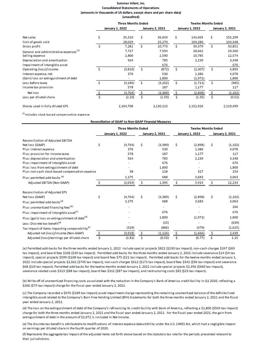 Amendment to BofA Agreement. On March 16, 2022, the Company and its subsidiary, Summer Infant (USA), Inc. (“Summer USA”), as borrowers, entered into Amendment No. 2 to the Third Amended and Restated Loan and Security Agreement among the Company and Summer USA, as borrowers, the guarantors from time-to-time party thereto, the financial institutions from time-to-time party thereto as lenders, and Bank of America, N.A., as agent for the lenders (the “BofA Amendment”).