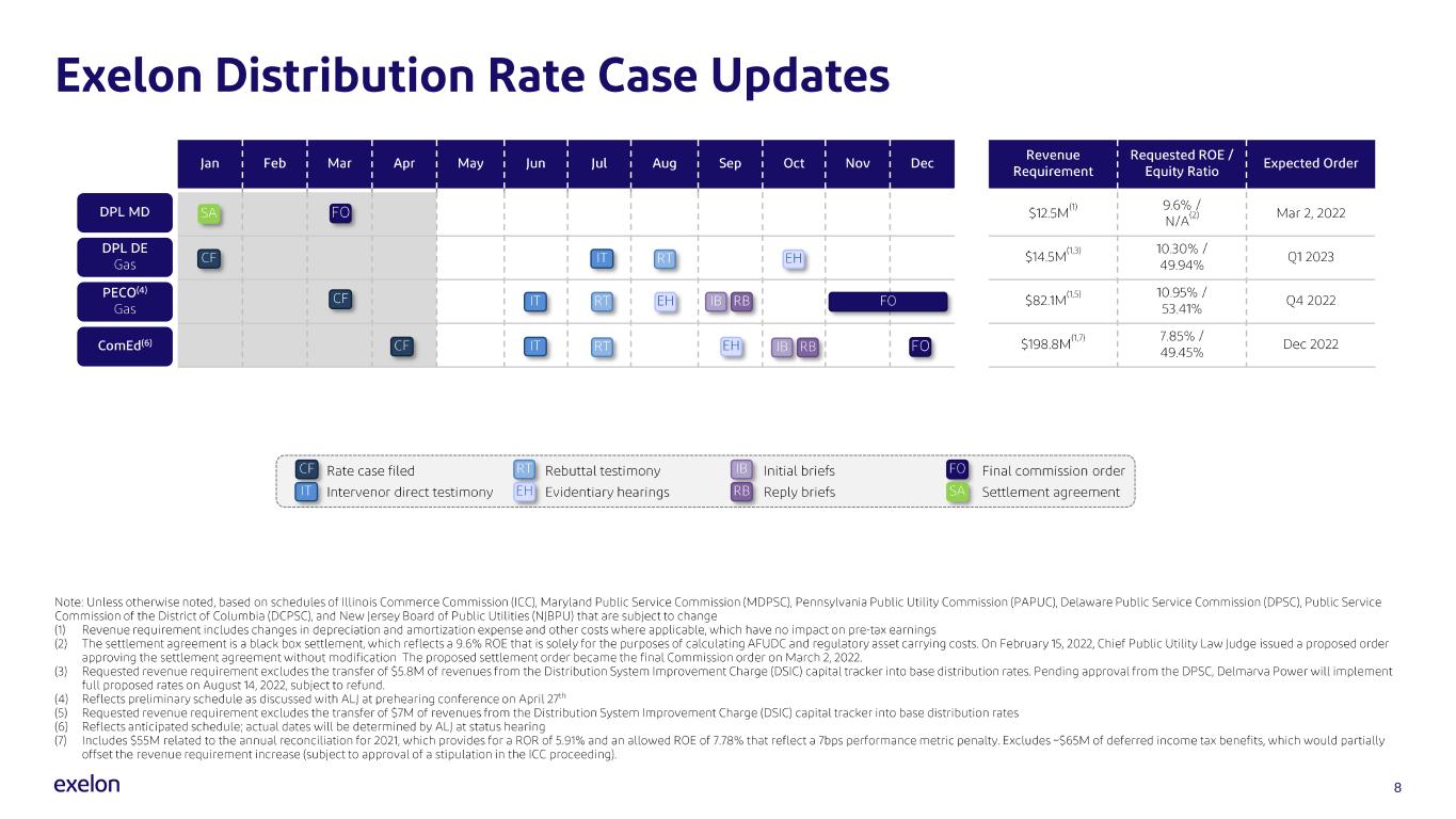 Exelon has scheduled the conference call for 9:00 AM CT (10:00 AM ET) on May 9, 2022. The call-in number in the U.S. and Canada is 833-397-0944. If requested, the conference ID number is 5895167. Media representatives are invited to participate on a listen-only basis. The call will be webcast and archived on the Investor Relations page of Exelon’s website: www.exeloncorp.com.