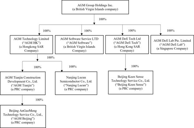| ● | Beijing Keen Sense Technology Service Co., Ltd., a company formed under the law of People’s Republic of China and a wholly-owned subsidiary of AGM Defi Tech; | |