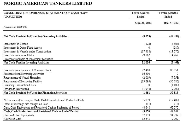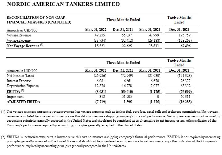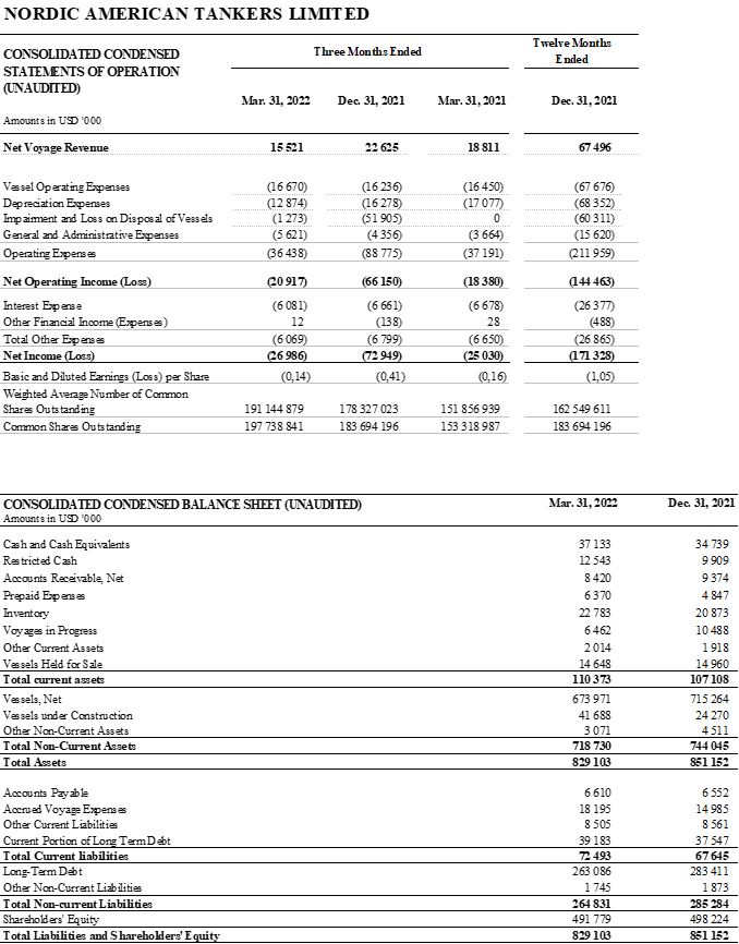Nordic American Tankers Limited (NYSE: NAT) – Report March 31, 2022 (First quarter 2022) – Daily rates improving