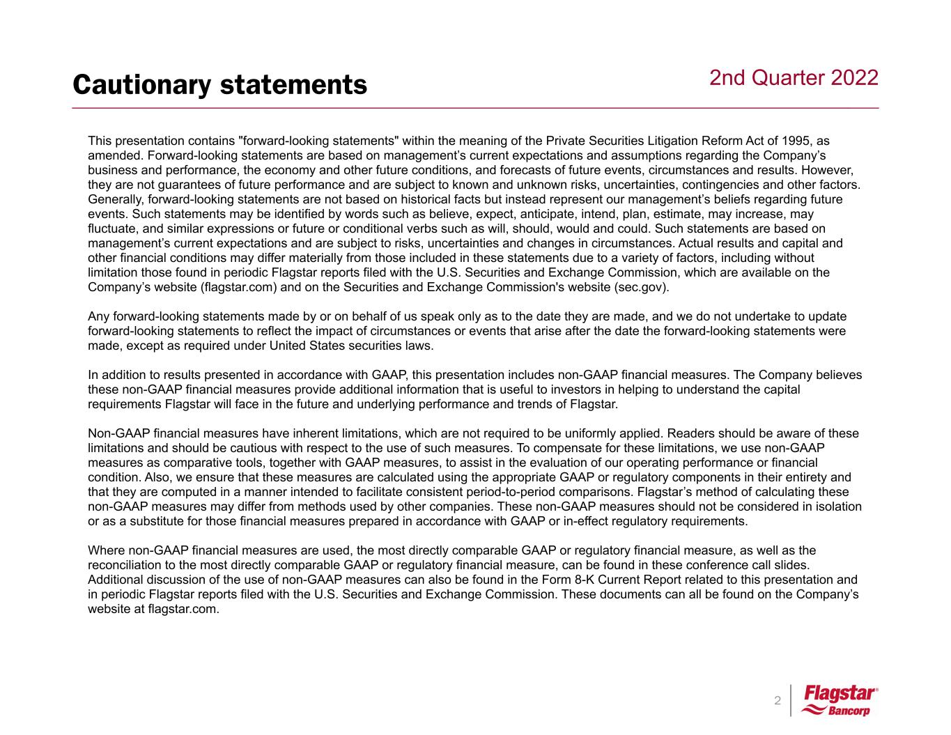1 2nd Quarter 2022 Flagstar Bancorp, Inc. (NYSE: FBC) Earnings Presentation 2nd Quarter 2022 July 27, 2022