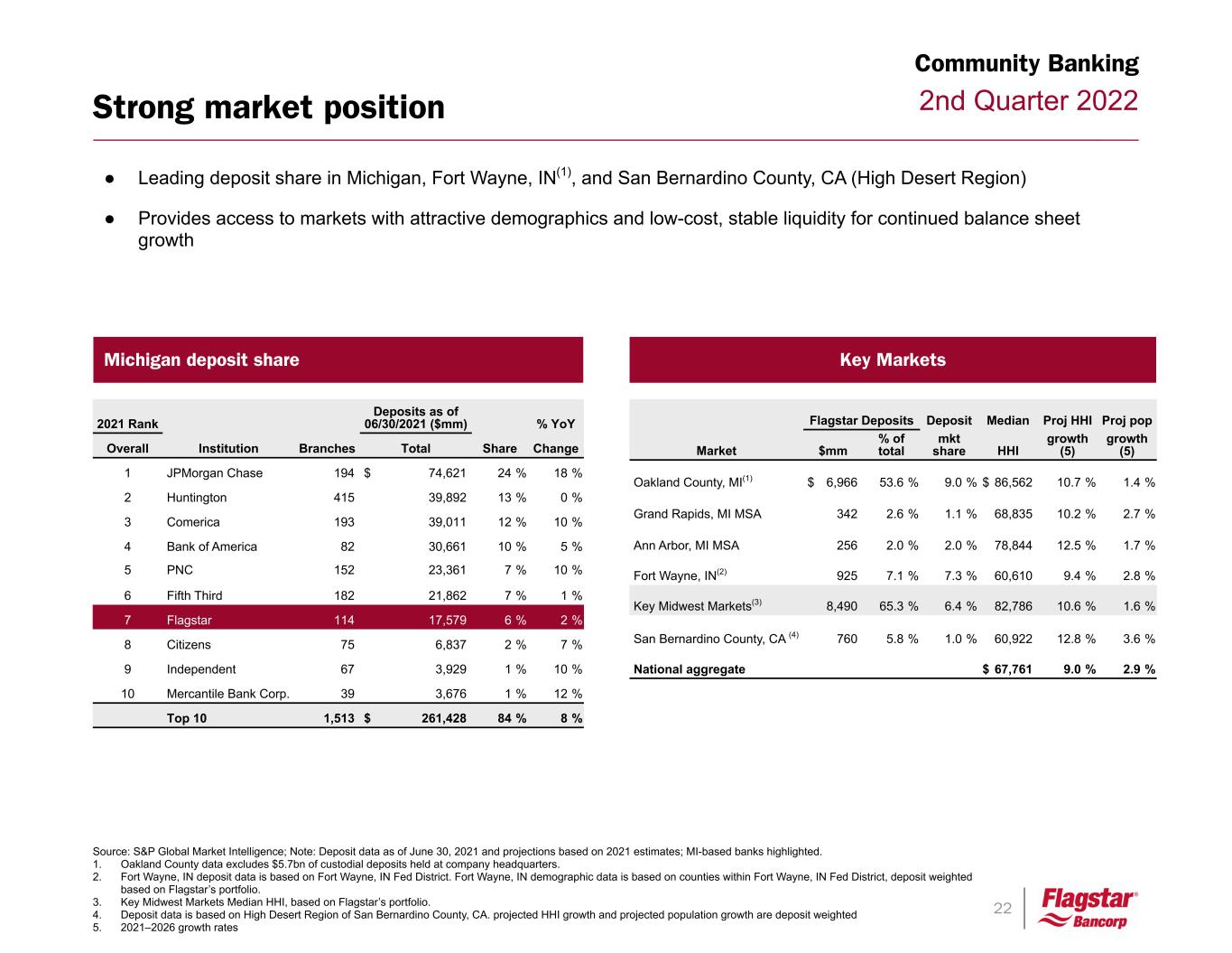 22 2nd Quarter 2022Strong market position Source: S&P Global Market Intelligence; Note: Deposit data as of June 30, 2021 and projections based on 2021 estimates; MI-based banks highlighted. 1. Oakland County data excludes $5.7bn of custodial deposits held at company headquarters. 2. Fort Wayne, IN deposit data is based on Fort Wayne, IN Fed District. Fort Wayne, IN demographic data is based on counties within Fort Wayne, IN Fed District, deposit weighted based on Flagstar’s portfolio. 3. Key Midwest Markets Median HHI, based on Flagstar’s portfolio. 4. Deposit data is based on High Desert Region of San Bernardino County, CA. projected HHI growth and projected population growth are deposit weighted 5. 2021–2026 growth rates Key Markets Community Banking Michigan deposit share ● Leading deposit share in Michigan, Fort Wayne, IN(1), and San Bernardino County, CA (High Desert Region) ● Provides access to markets with attractive demographics and low-cost, stable liquidity for continued balance sheet growth Flagstar Deposits Deposit Median Proj HHI Proj pop Market $mm % of total mkt share HHI growth (5) growth (5) Oakland County, MI(1) $ 6,966 53.6 % 9.0 % $ 86,562 10.7 % 1.4 % Grand Rapids, MI MSA 342 2.6 % 1.1 % 68,835 10.2 % 2.7 % Ann Arbor, MI MSA 256 2.0 % 2.0 % 78,844 12.5 % 1.7 % Fort Wayne, IN(2) 925 7.1 % 7.3 % 60,610 9.4 % 2.8 % Key Midwest Markets(3) 8,490 65.3 % 6.4 % 82,786 10.6 % 1.6 % San Bernardino County, CA (4) 760 5.8 % 1.0 % 60,922 12.8 % 3.6 % National aggregate $ 67,761 9.0 % 2.9 % 2021 Rank Deposits as of 06/30/2021 ($mm) % YoY Overall Institution Branches Total Share Change 1 JPMorgan Chase 194 $ 74,621 24 % 18 % 2 Huntington 415 39,892 13 % 0 % 3 Comerica 193 39,011 12 % 10 % 4 Bank of America 82 30,661 10 % 5 % 5 PNC 152 23,361 7 % 10 % 6 Fifth Third 182 21,862 7 % 1 % 7 Flagstar 114 17,579 6 % 2 % 8 Citizens 75 6,837 2 % 7 % 9 Independent 67 3,929 1 % 10 % 10 Mercantile Bank Corp. 39 3,676 1 % 12 % Top 10 1,513 $ 261,428 84 % 8 %