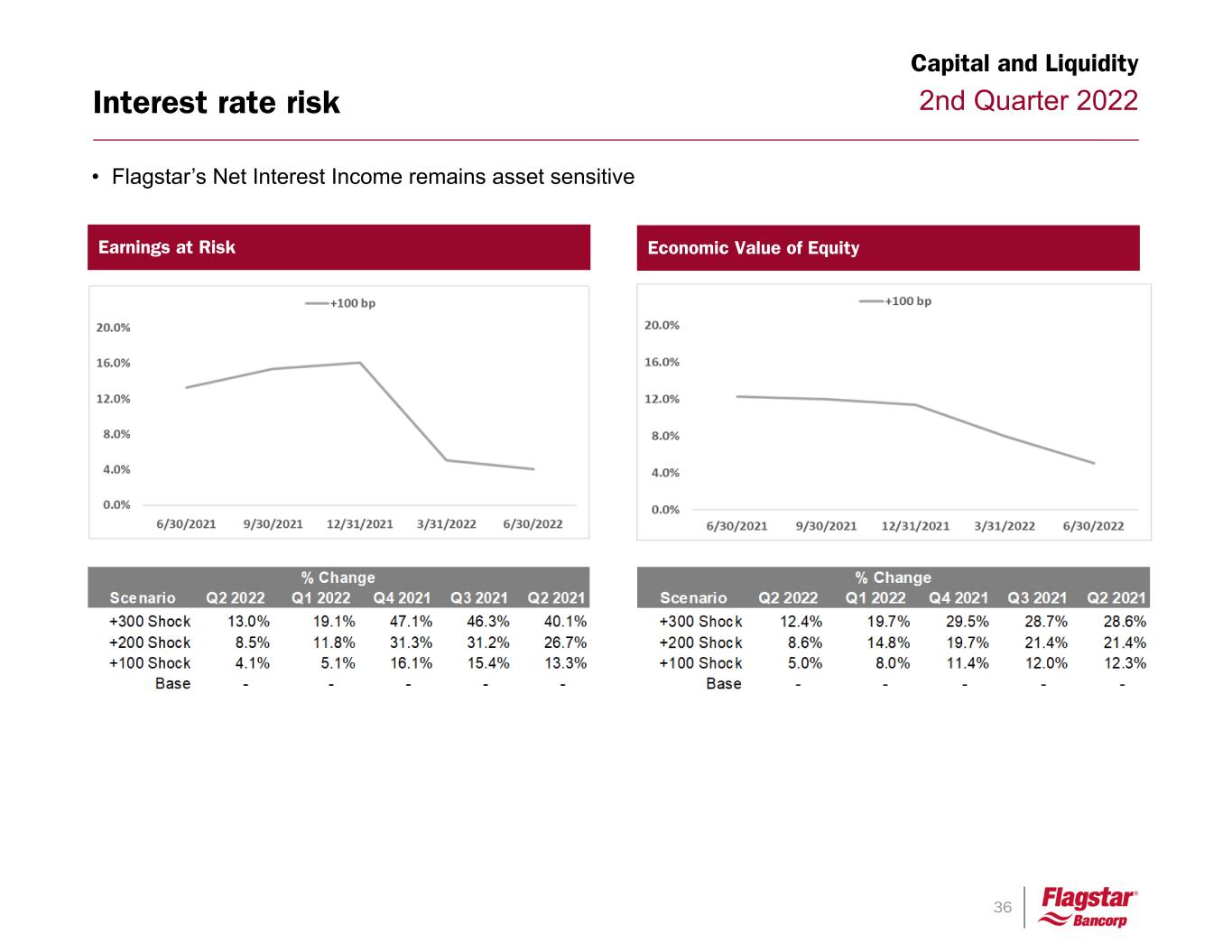 36 2nd Quarter 2022 • Flagstar’s Net Interest Income remains asset sensitive Interest rate risk 154 7 35 Capital and Liquidity Earnings at Risk Economic Value of Equity