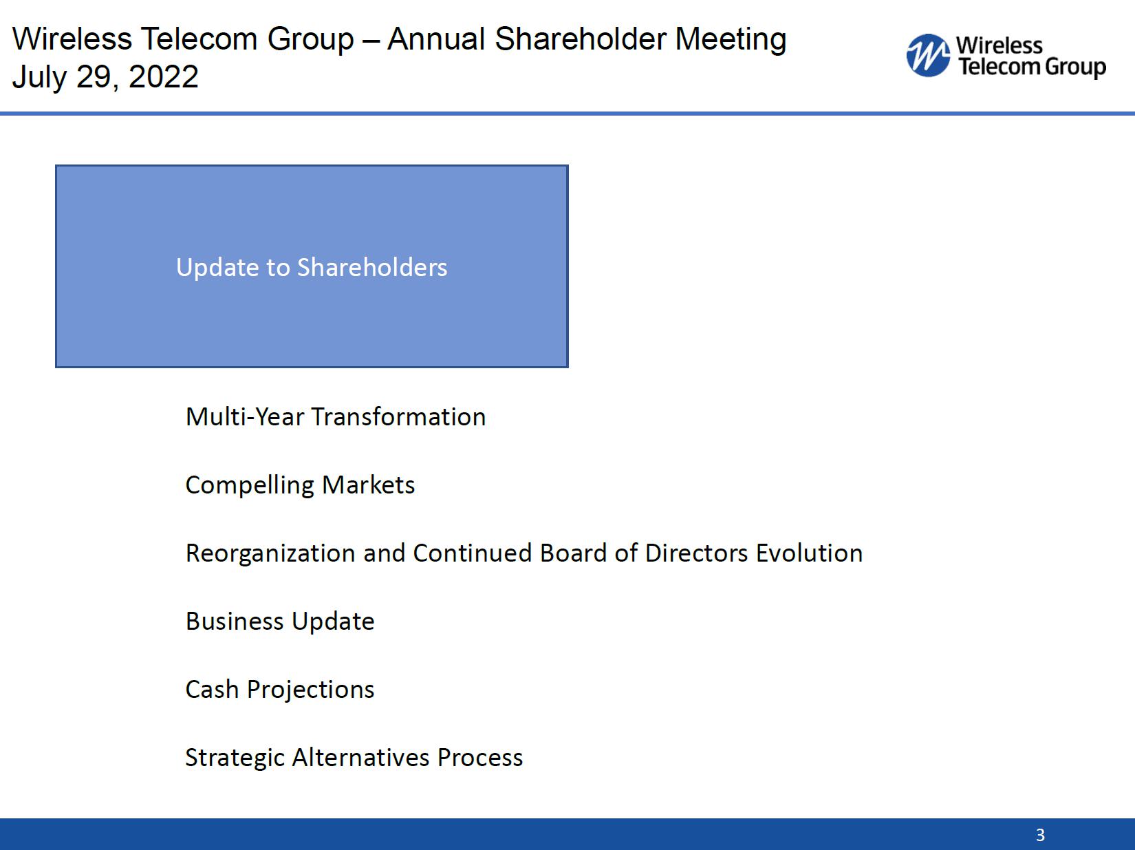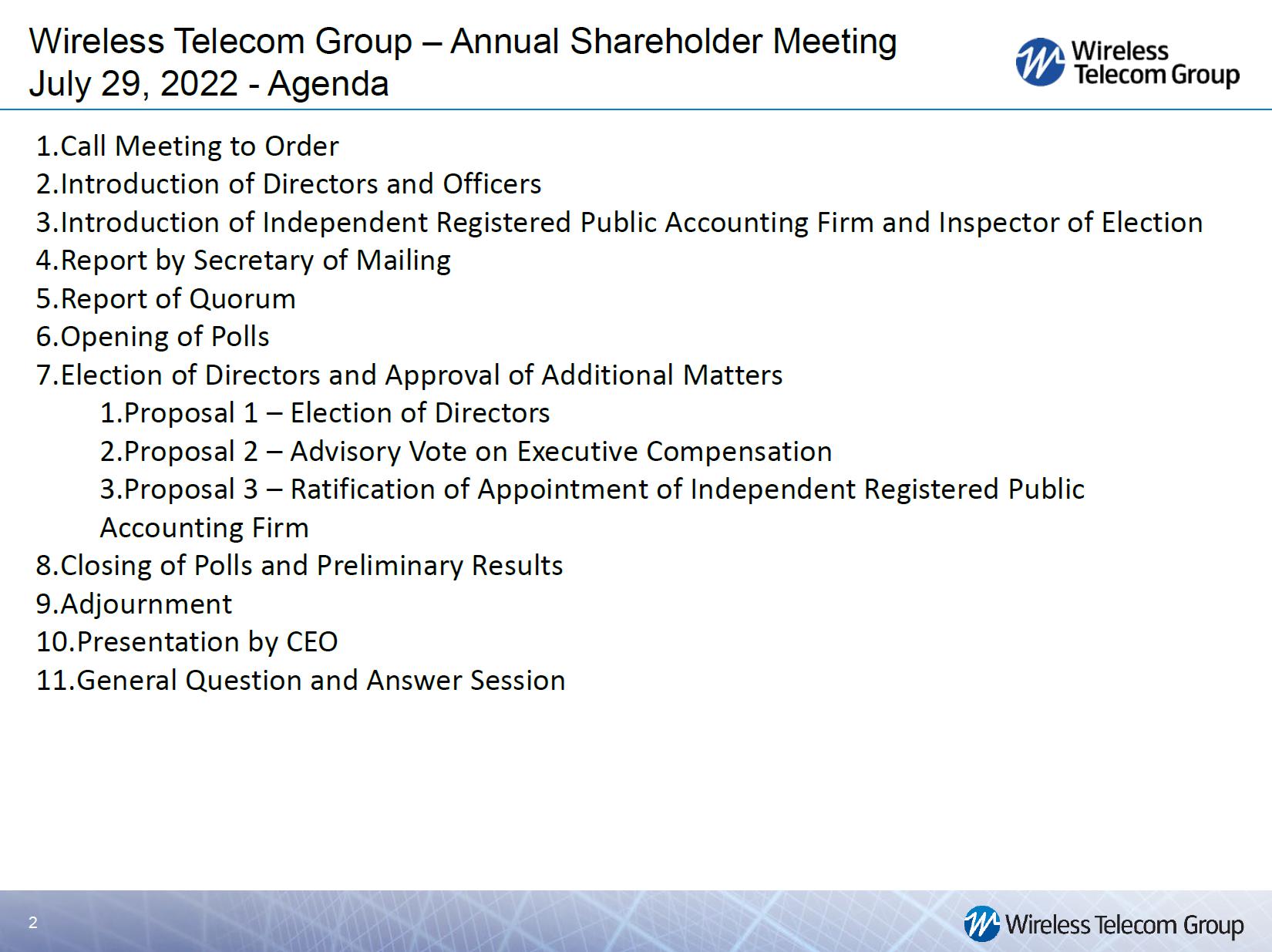 Wireless Telecom Group, Inc. Presentation: “2022 Annual Shareholder Meeting” | |