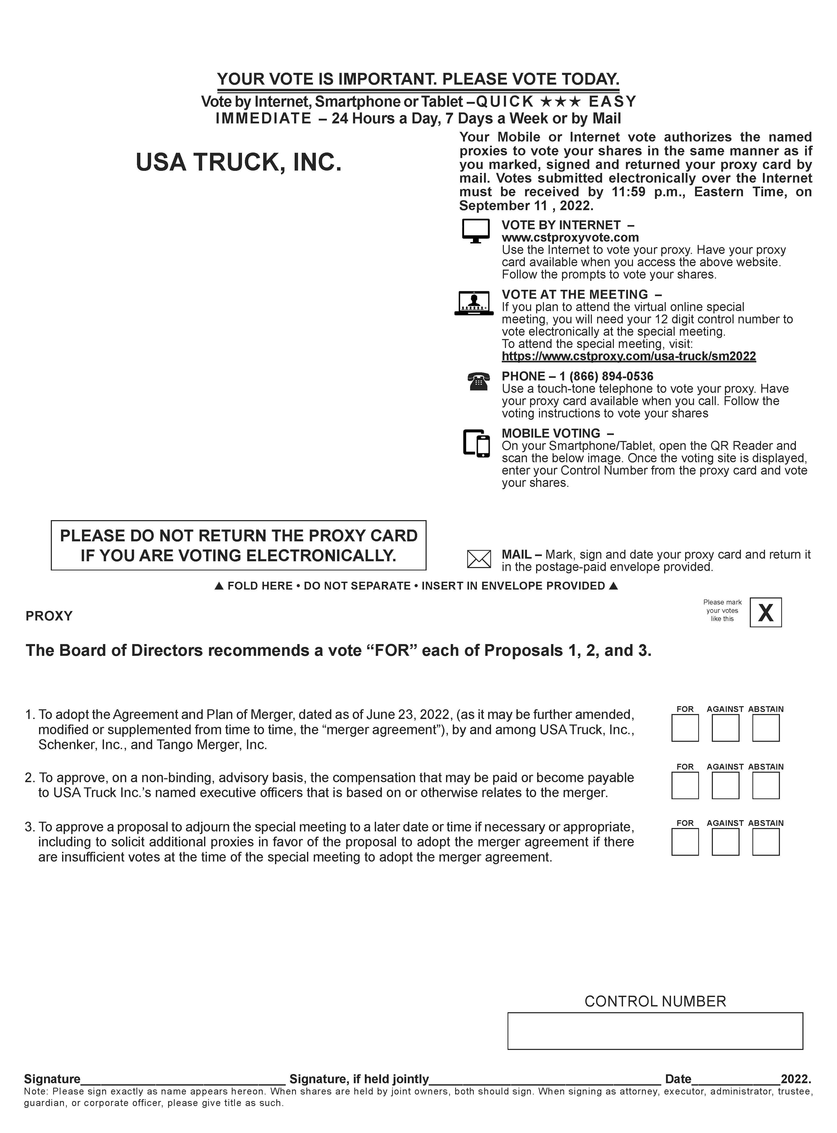 a proposal to adopt the Agreement and Plan of Merger, dated as of June 23, 2022, (as it may be further amended, modified or supplemented from time to time, the “merger agreement”), by and among the Company, Schenker, Inc., a New York