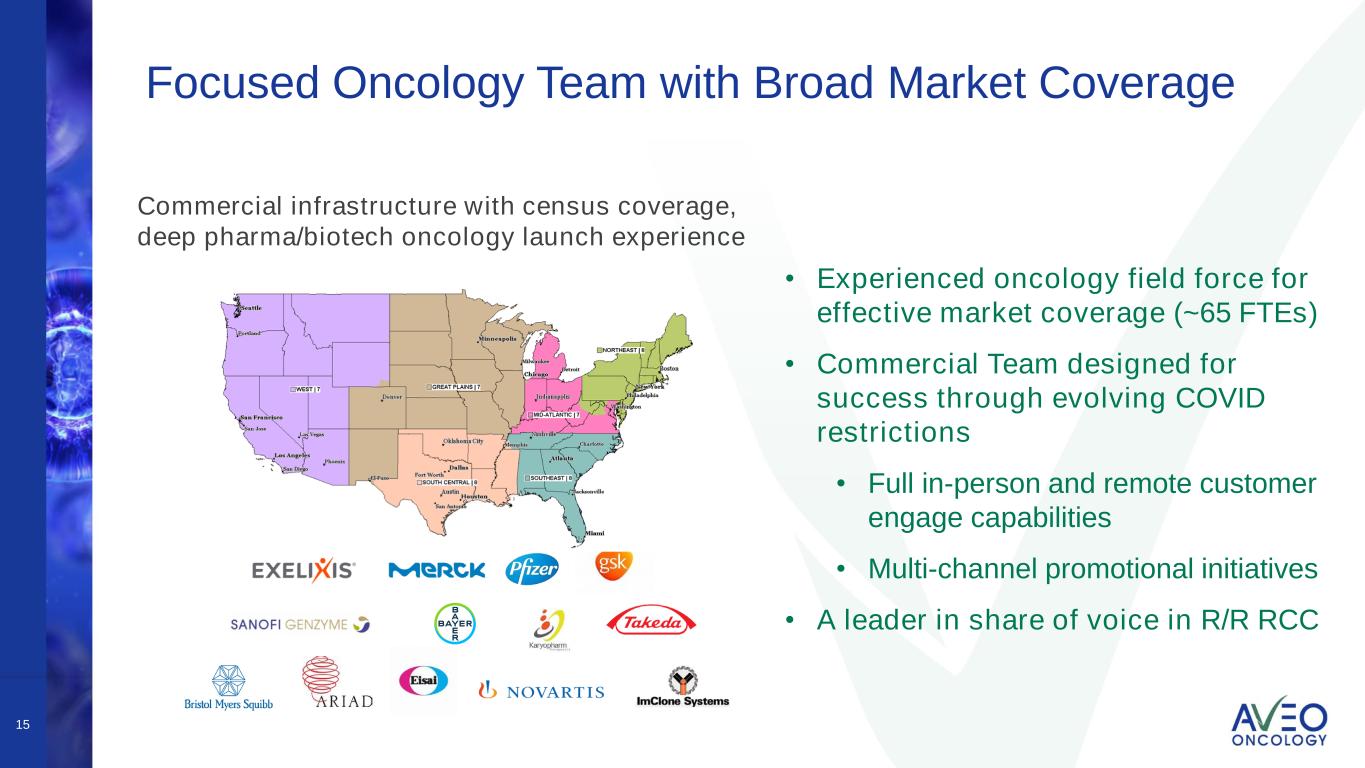 Focused Oncology Team with Broad Market Coverage • Experienced oncology field force for effective market coverage (~65 FTEs) • Commercial Team designed for success through evolving COVID restrictions • Full in-person and remote customer engage capabilities • Multi-channel promotional initiatives • A leader in share of voice in R/R RCC 15 Commercial infrastructure with census coverage, deep pharma/biotech oncology launch experience