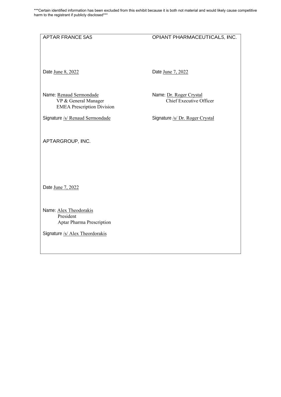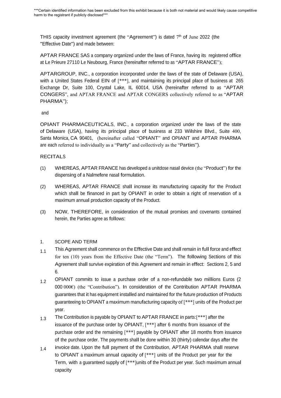 | | OPIANT PHARMACEUTICALS, INC. | |