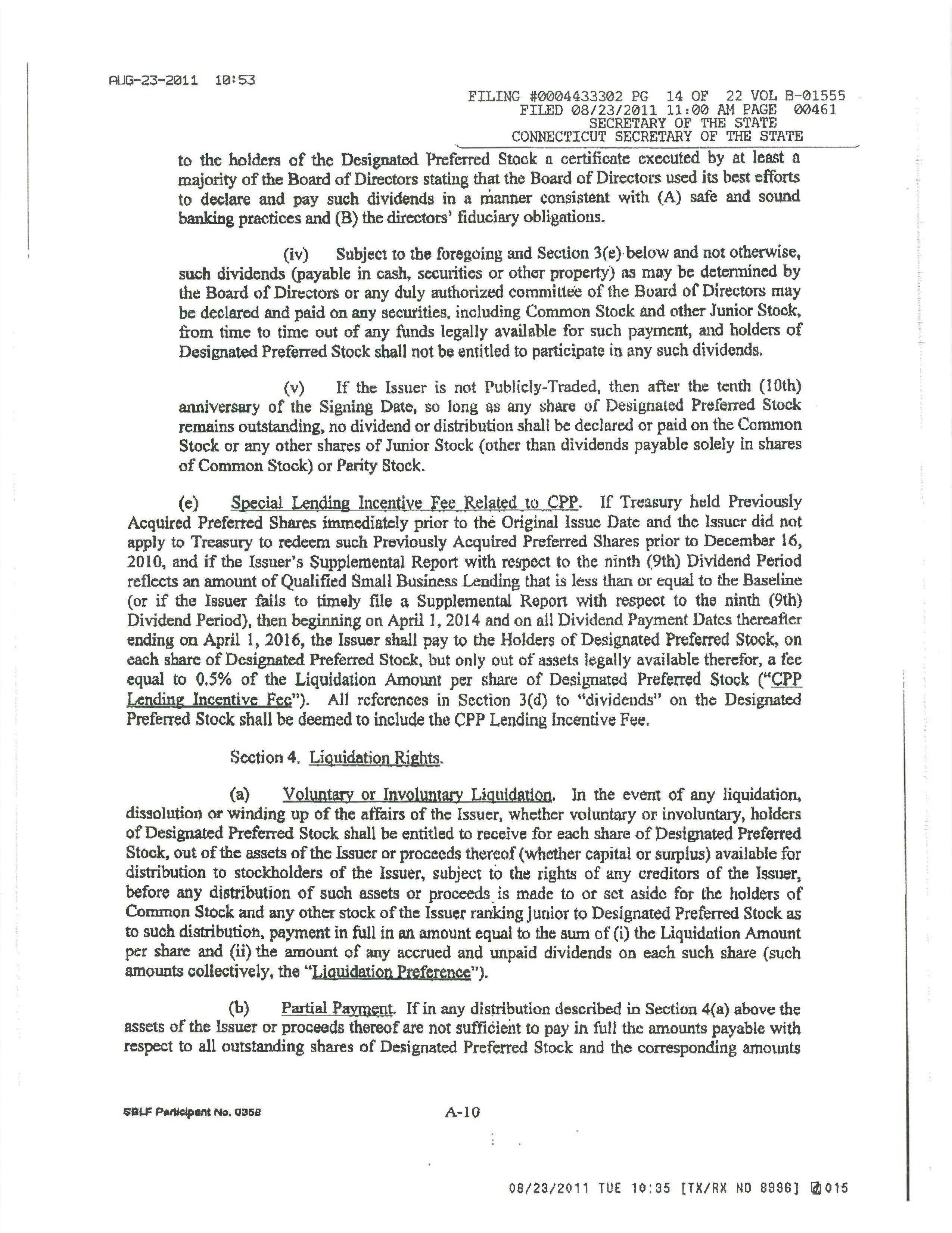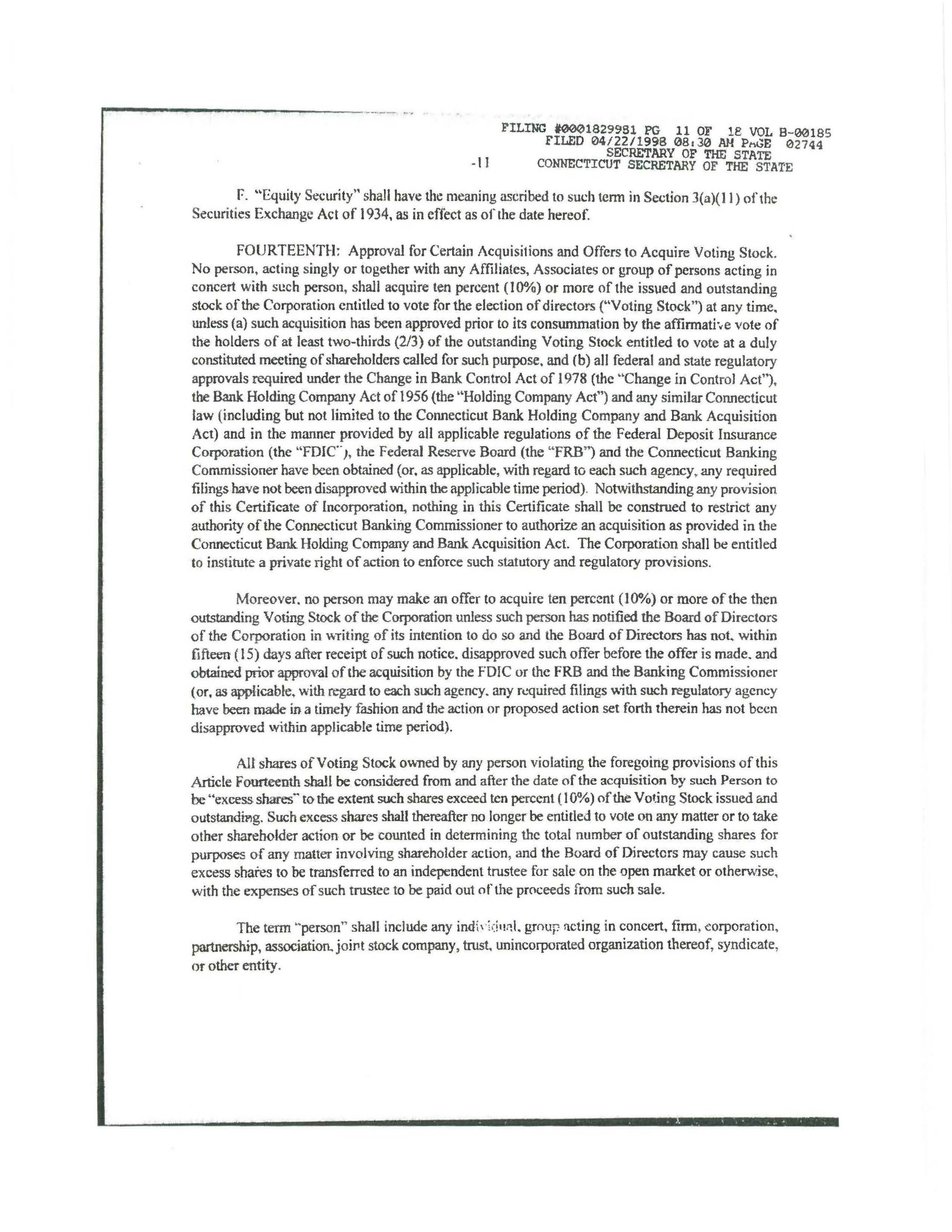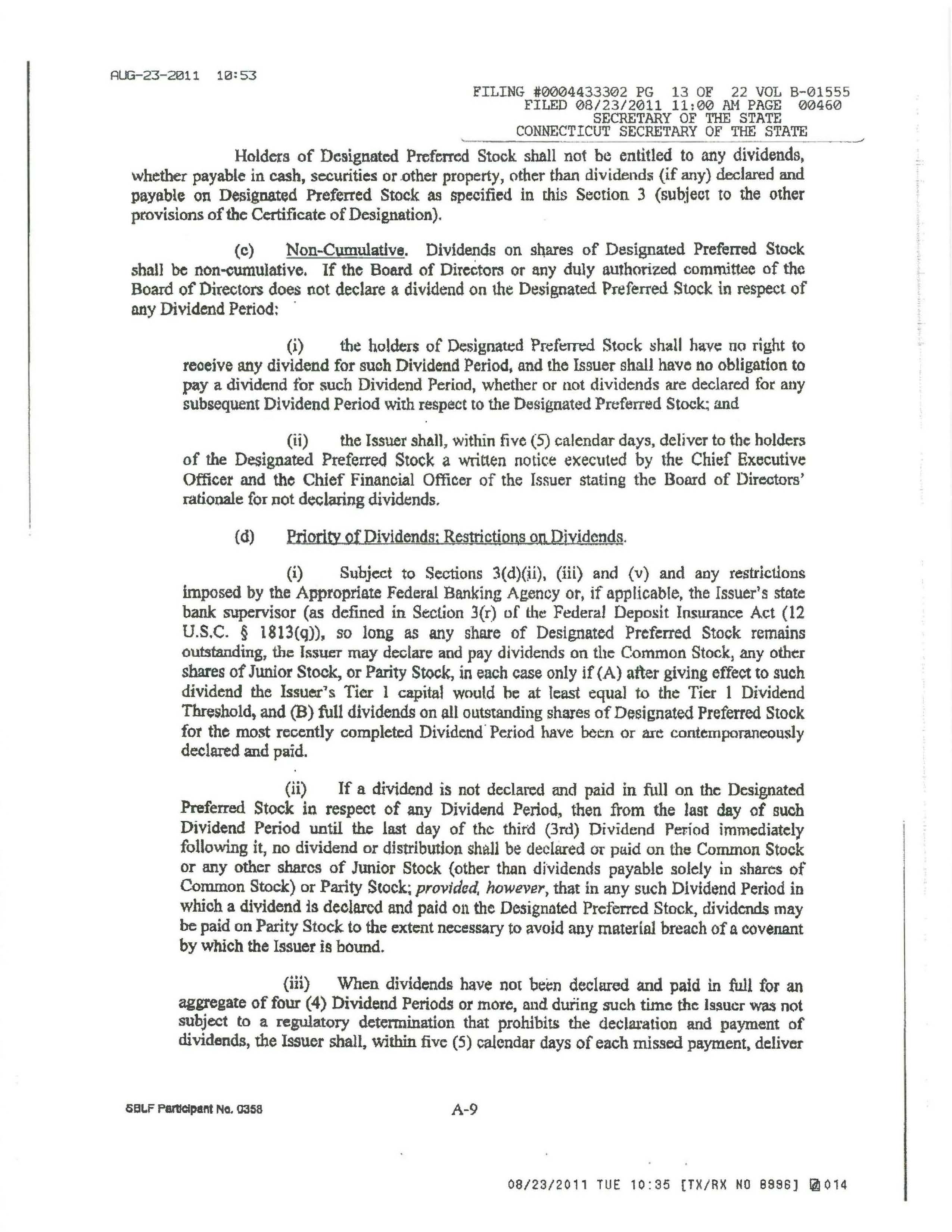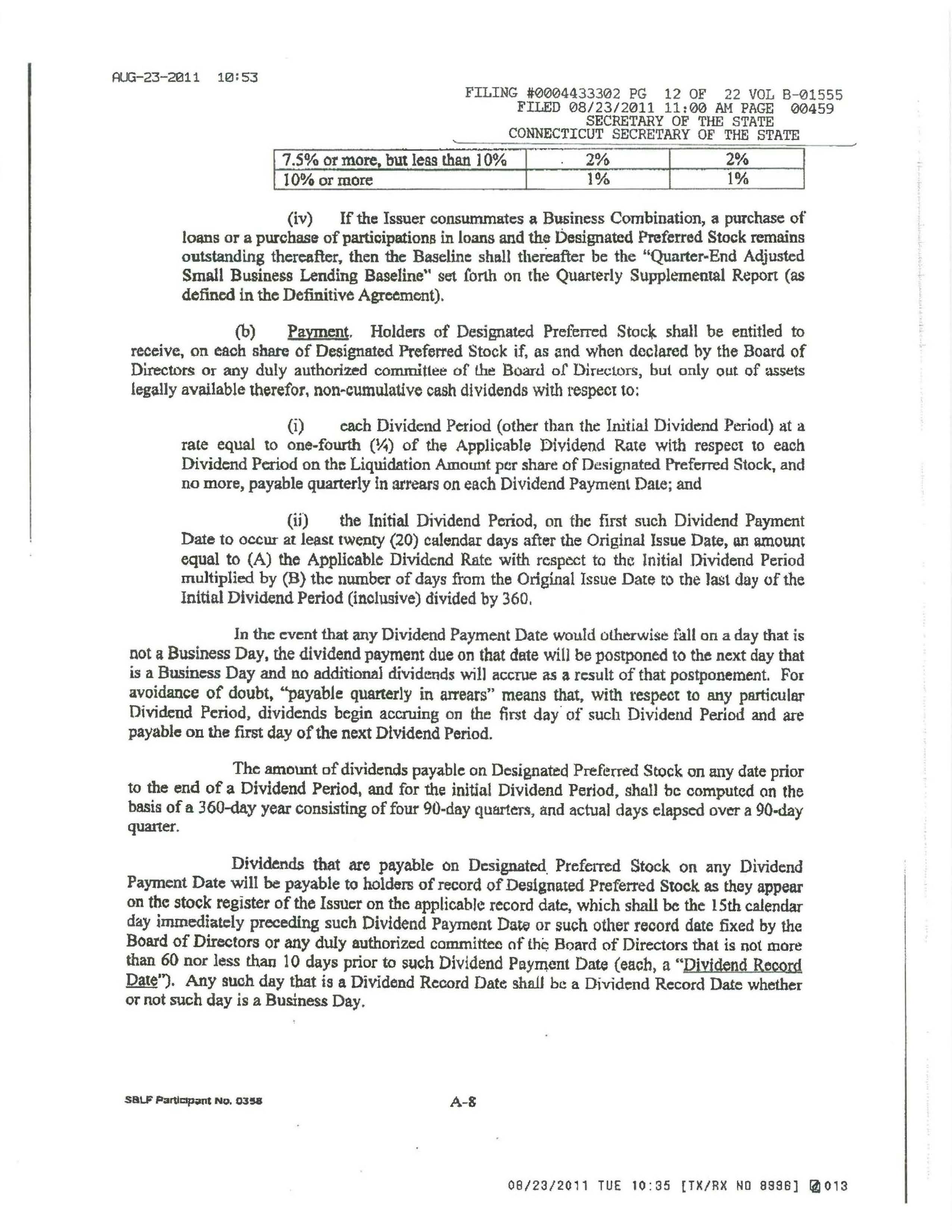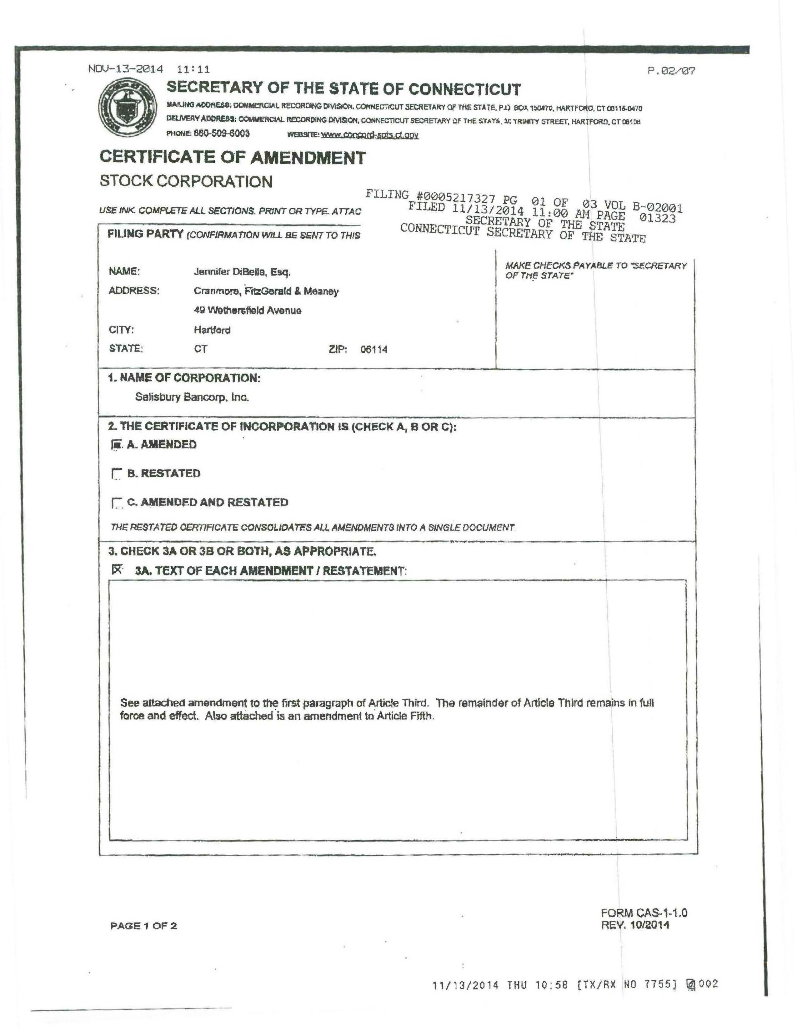 | (f) | the effect of the COVID-19 pandemic on Salisbury, the communities served by the Bank, the State of Connecticut and the United States, related to the economy and overall financial stability; |