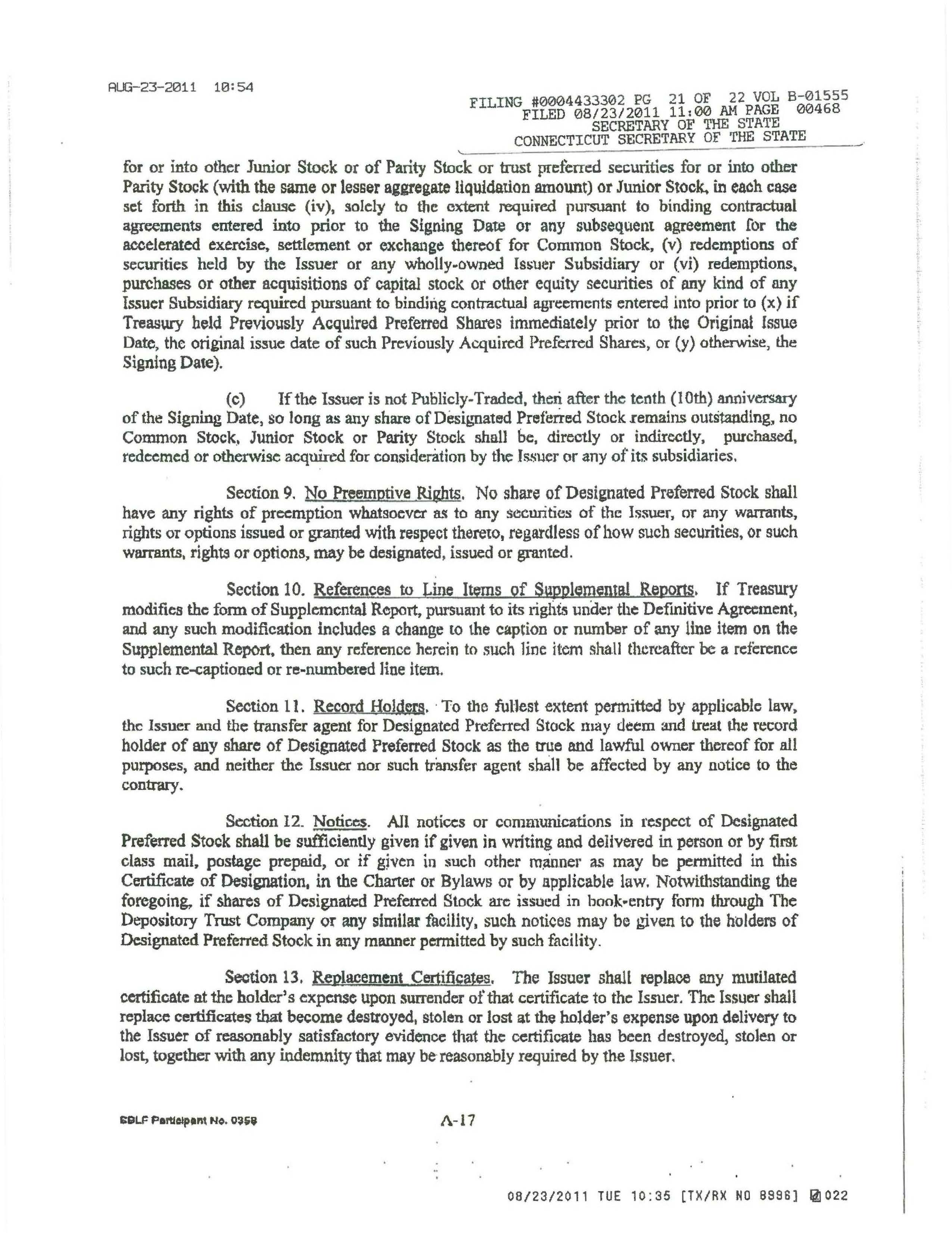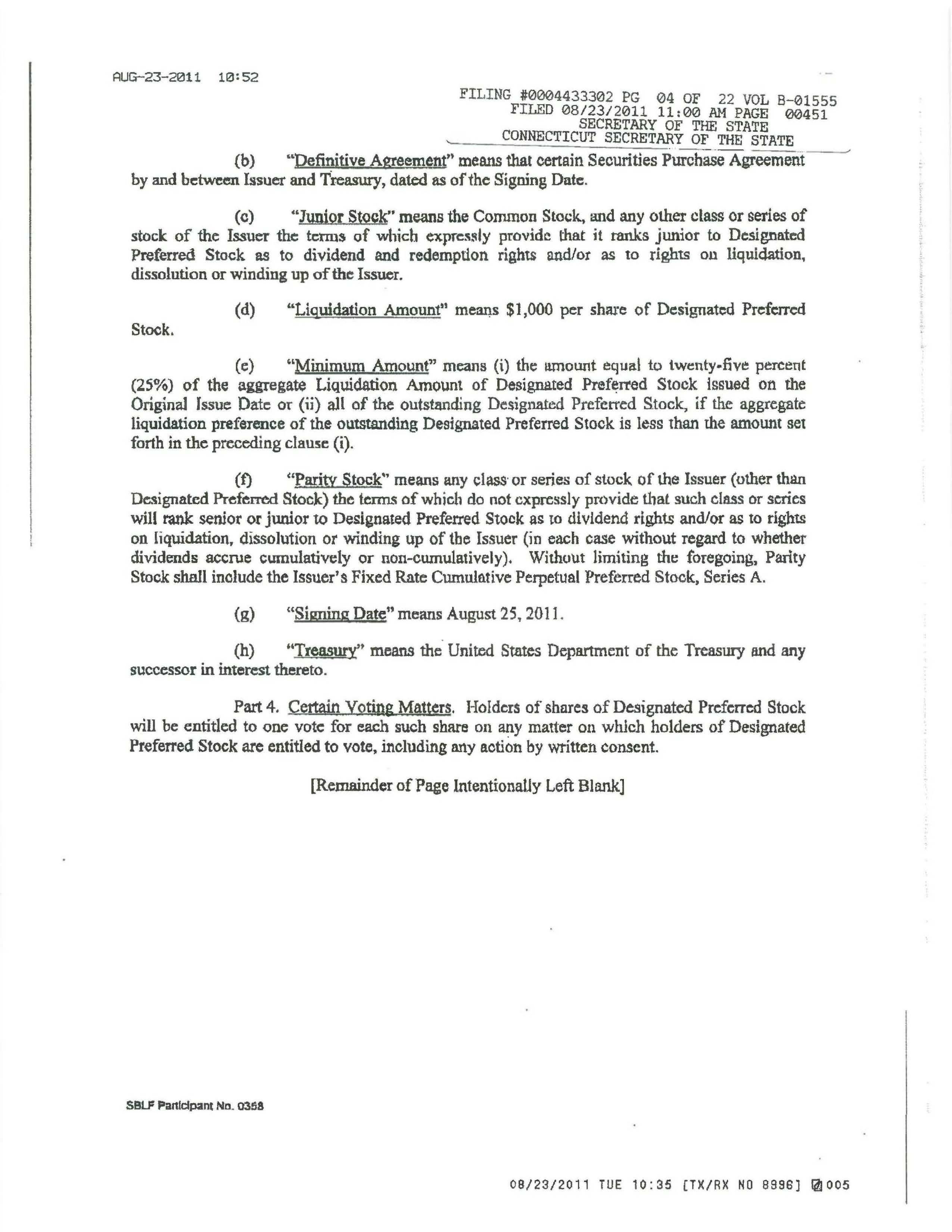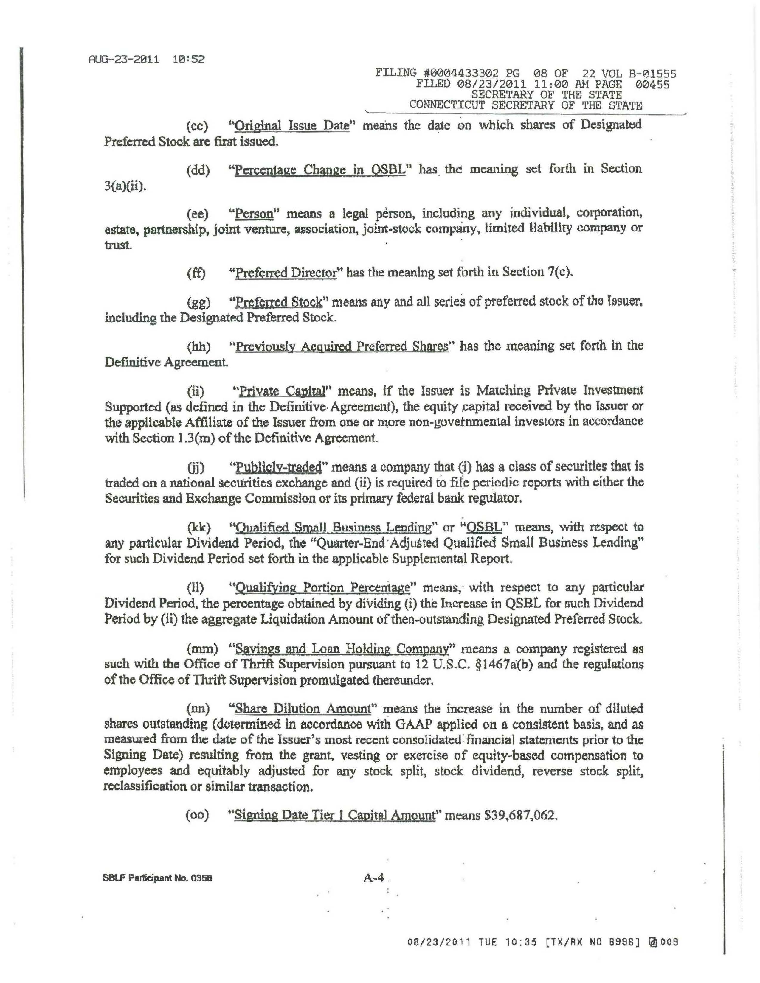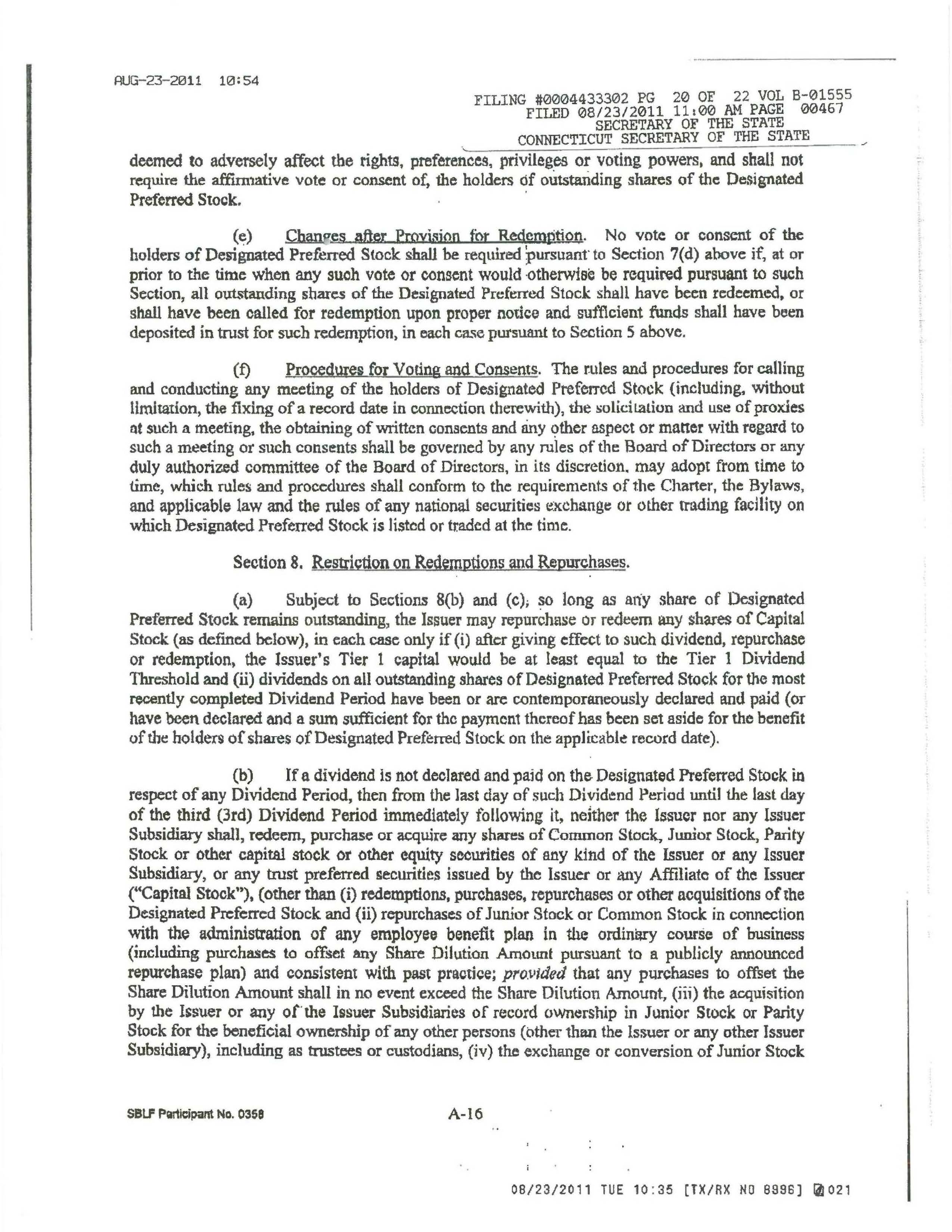 | (f) | the effect of the COVID-19 pandemic on Salisbury, the communities served by the Bank, the State of Connecticut and the United States, related to the economy and overall financial stability; |