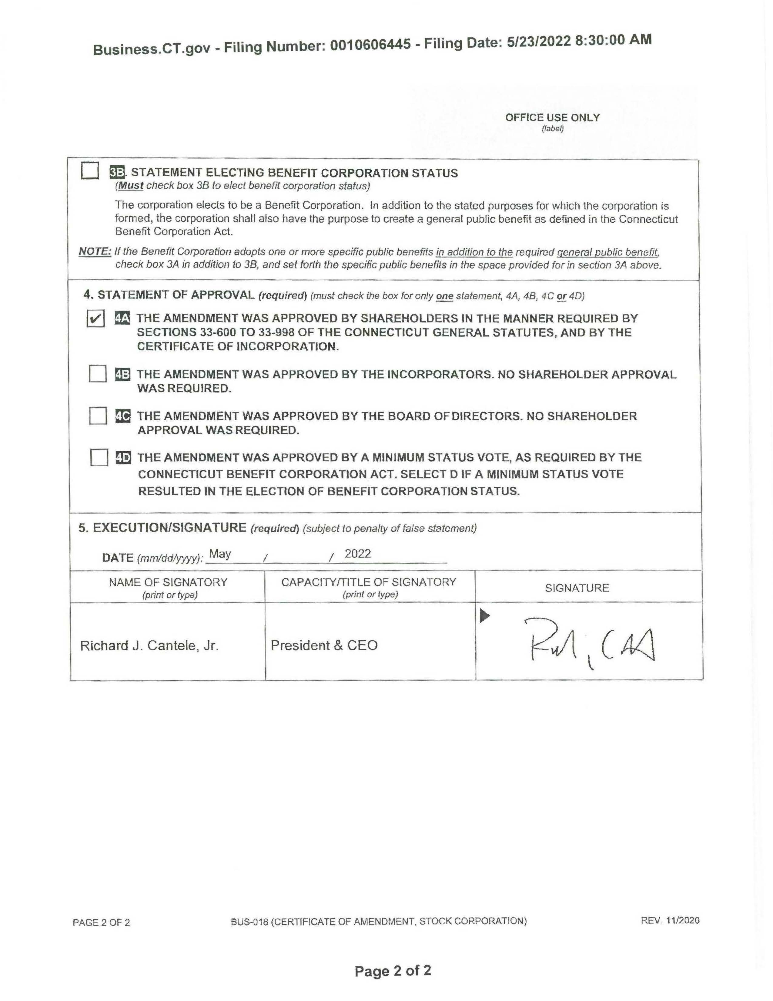 | August 15, 2022 | By: | /s/ Richard J. Cantele, Jr. | By: | /s/ Peter Albero |