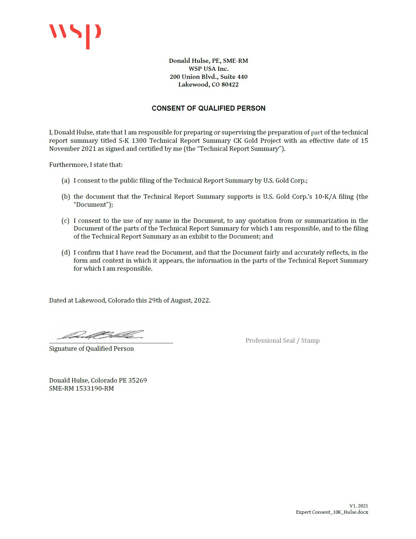 In addition, no other information has been updated for any subsequent events occurring after August 15, 2022, the date of filing of the original Form 10-K. As used in this Form 10-K/A, references to “U.S. Gold,” the “Company,” “we,” “our,” or “us” mean U.S. Gold Corp., our predecessors and consolidated subsidiaries, or any one or more of them, as the context requires.