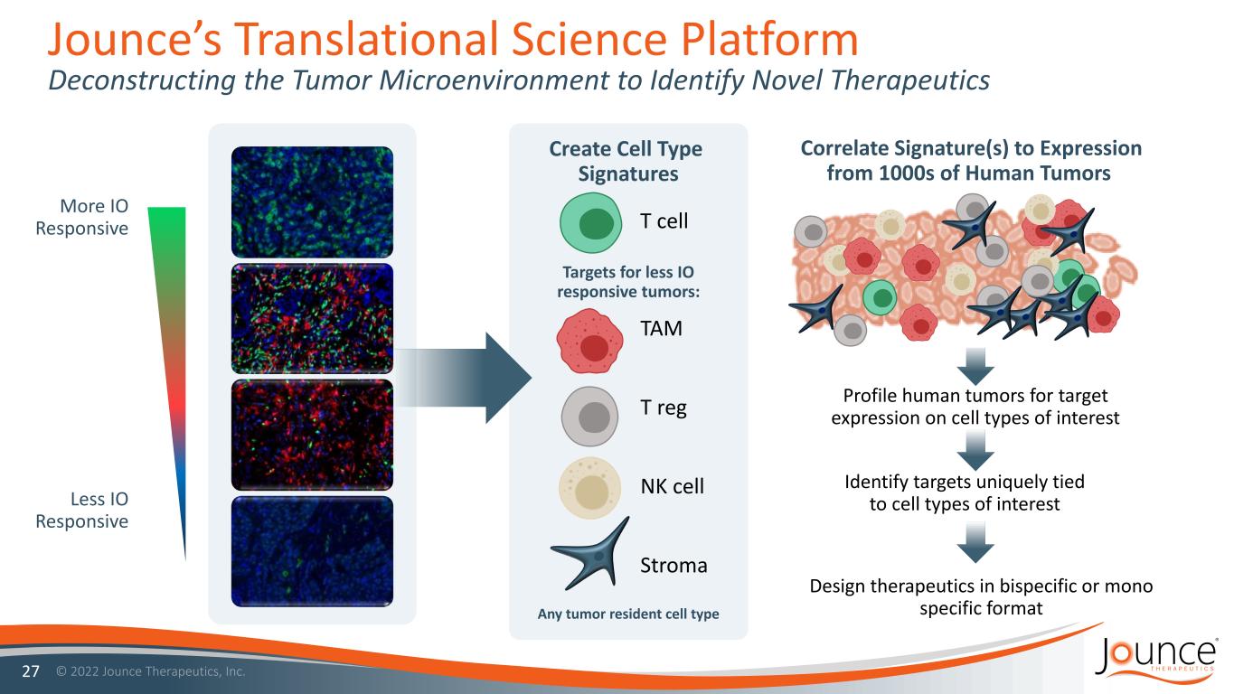 Jounce Therapeutics Corporate Presentation A NEXT GEN IMMUNOTHERAPY COMPANY AUGUST 2022 Exhib i t 99.1