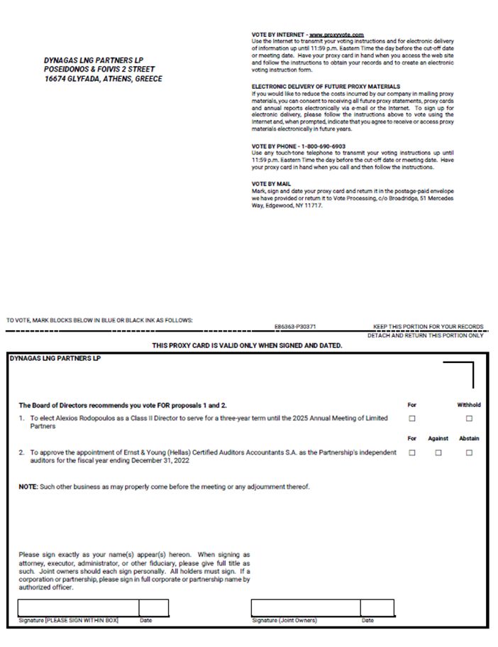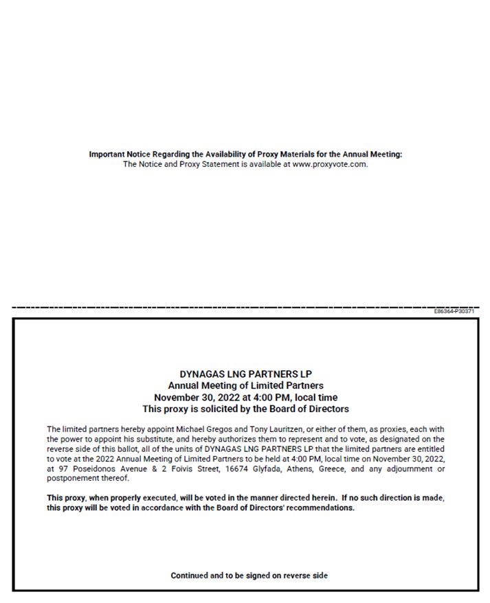 Exhibit 99.1 to this Report on Form 6-K is a copy of the press release of Dynagas LNG Partners LP dated October 25, 2022: Dynagas LNG