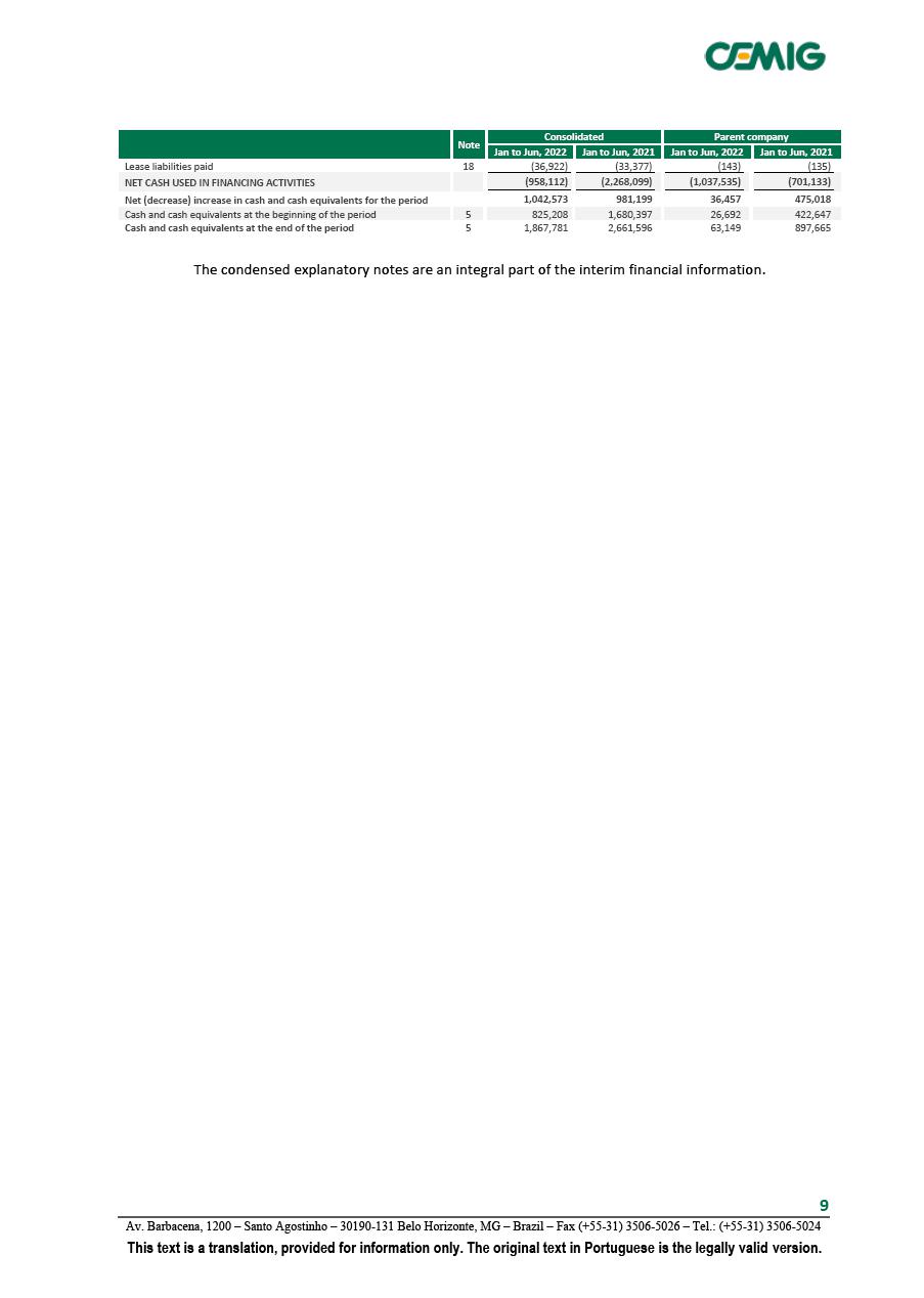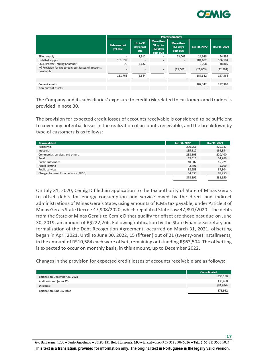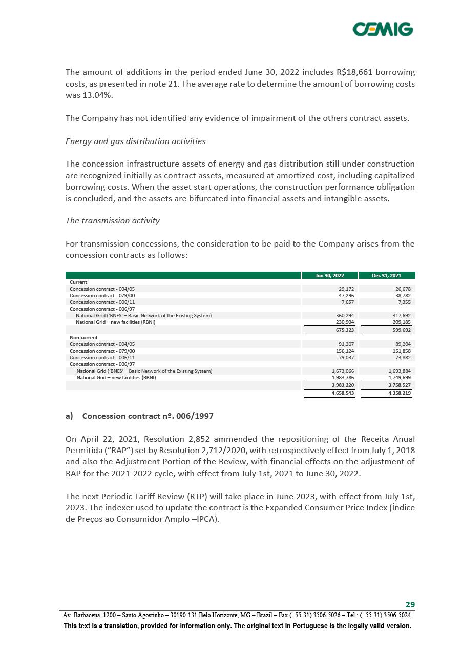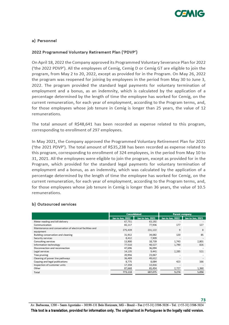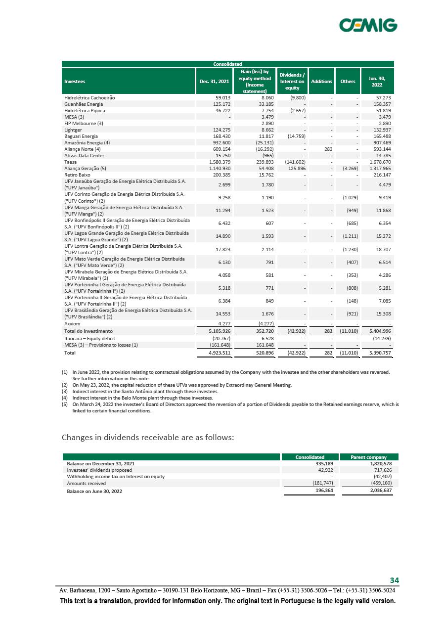 Companhia Energética de Minas Gerais - CEMIG (“Cemig” or “Company”), in response to Official Letter 184/2022/CVM/SEP/GEA-1, of August 31, 2022, makes the following considerations: