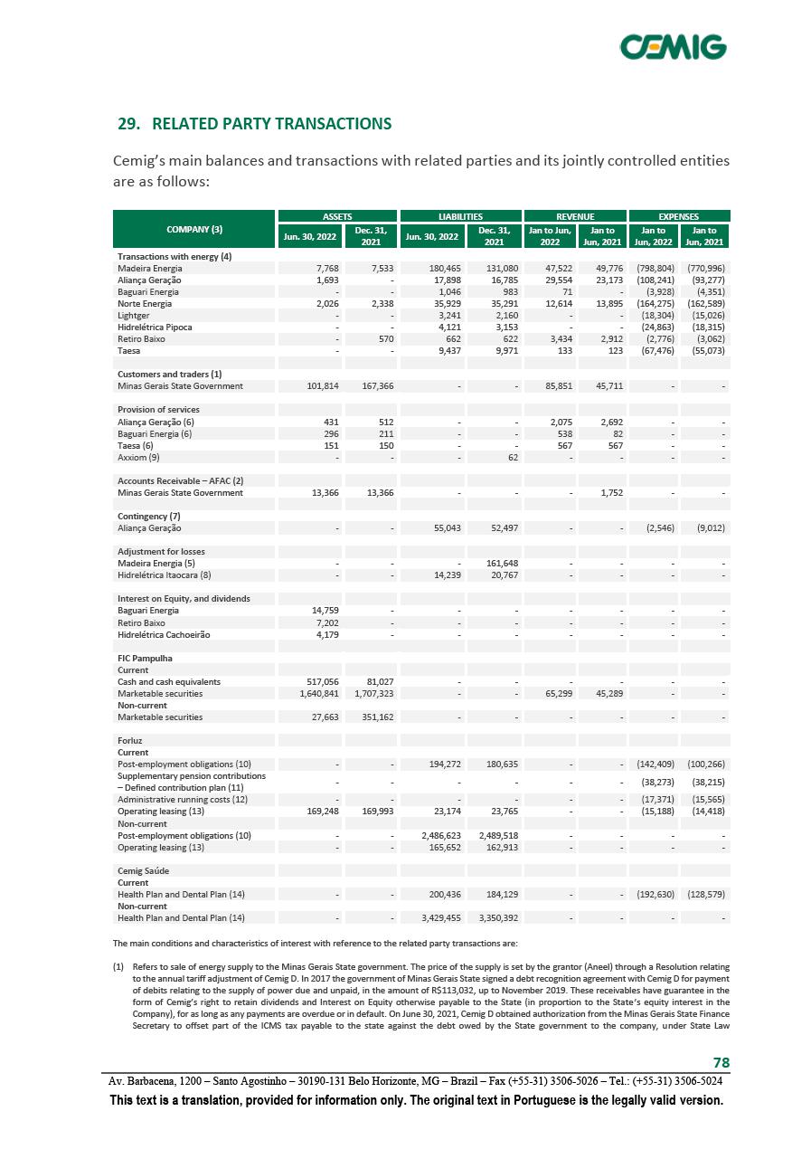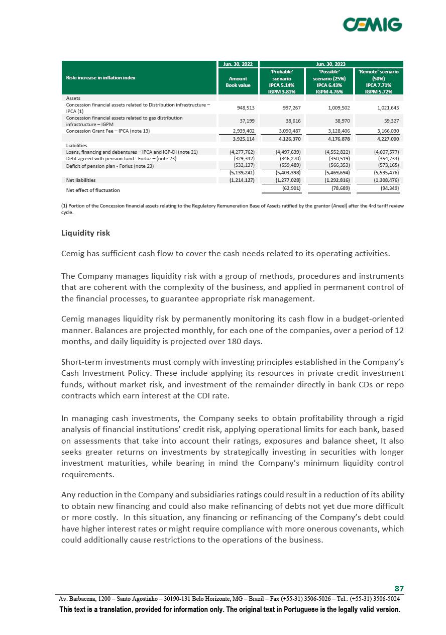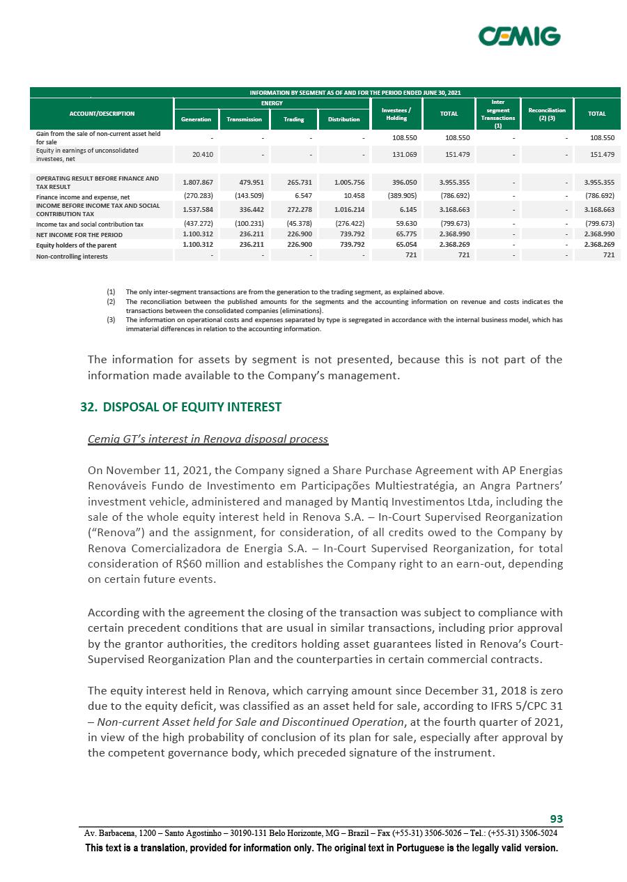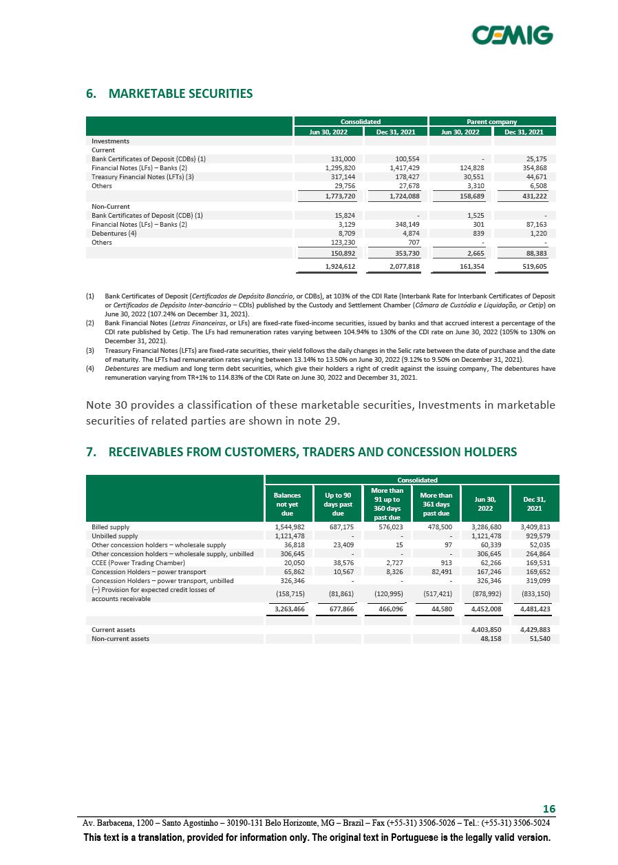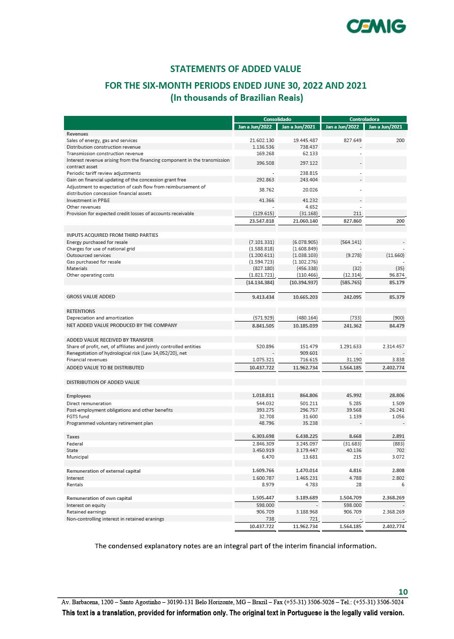 Companhia Energética de Minas Gerais - CEMIG (“Cemig” or “Company”), in response to Official Letter 184/2022/CVM/SEP/GEA-1, of August 31, 2022, makes the following considerations: