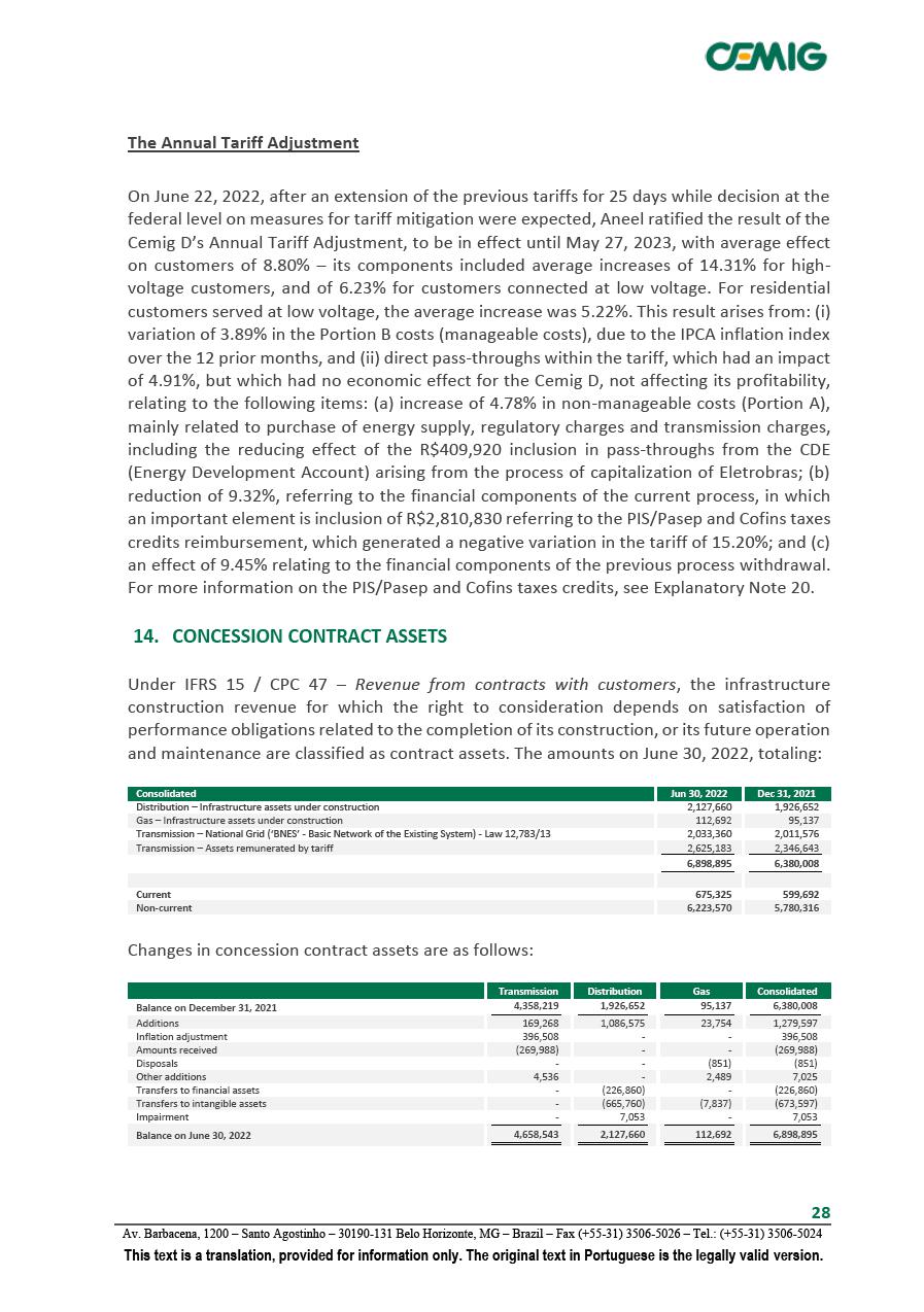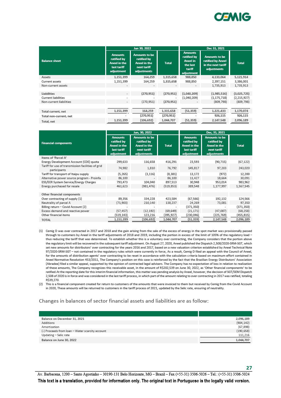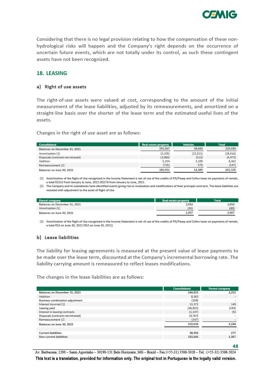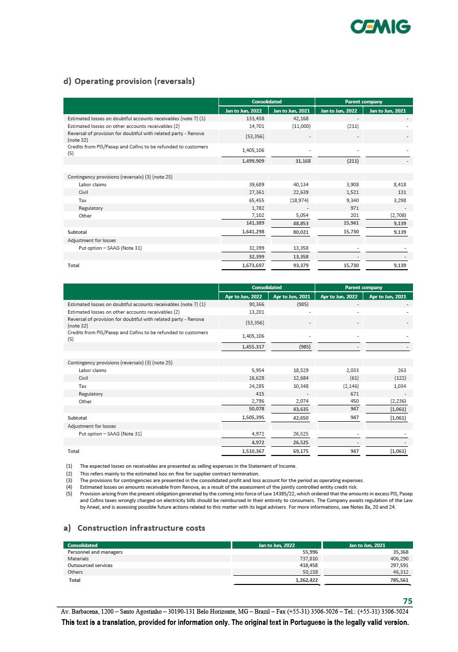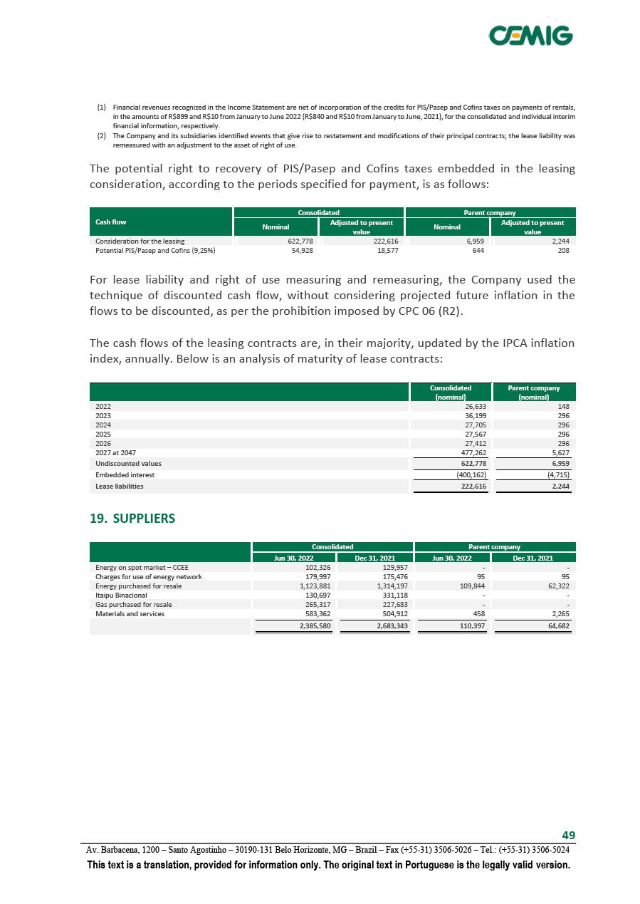 Companhia Energética de Minas Gerais - CEMIG (“Cemig” or “Company”), in response to Official Letter 184/2022/CVM/SEP/GEA-1, of August 31, 2022, makes the following considerations: