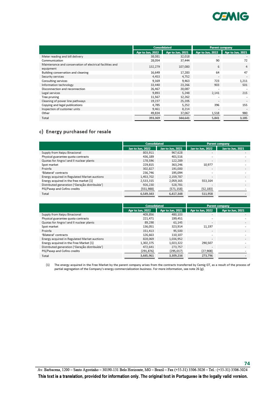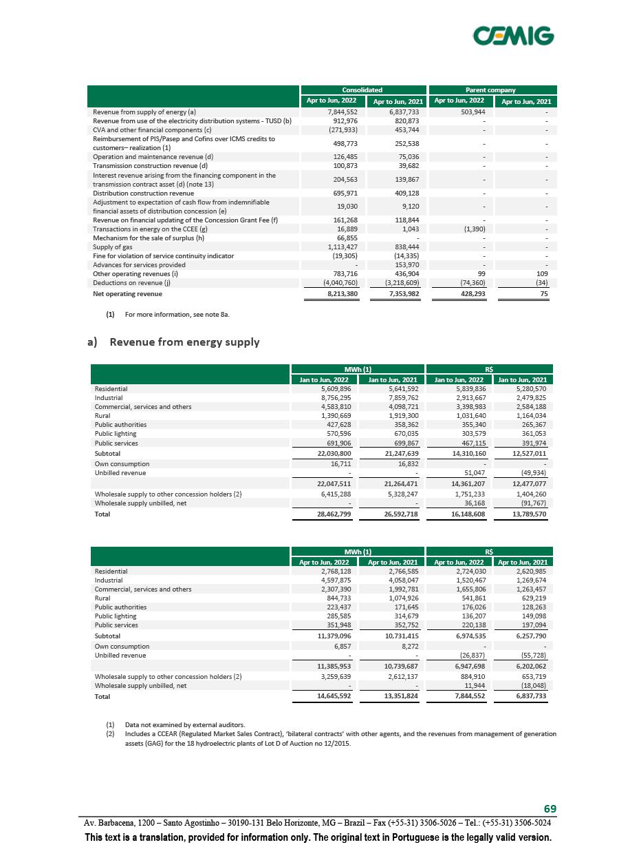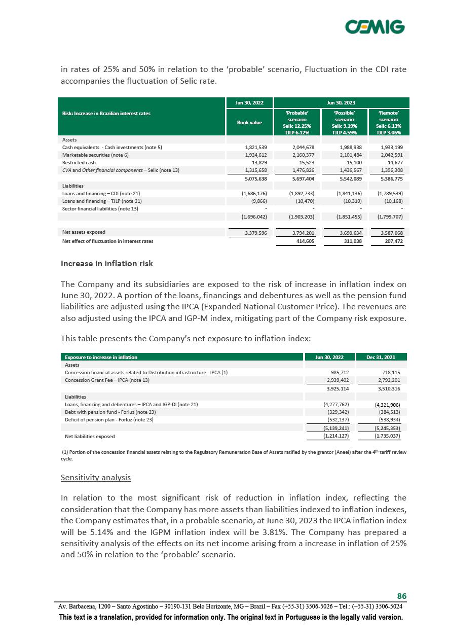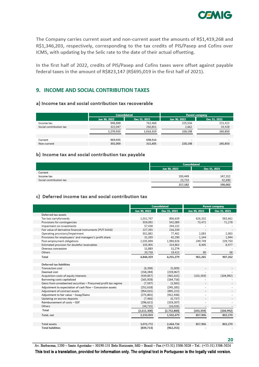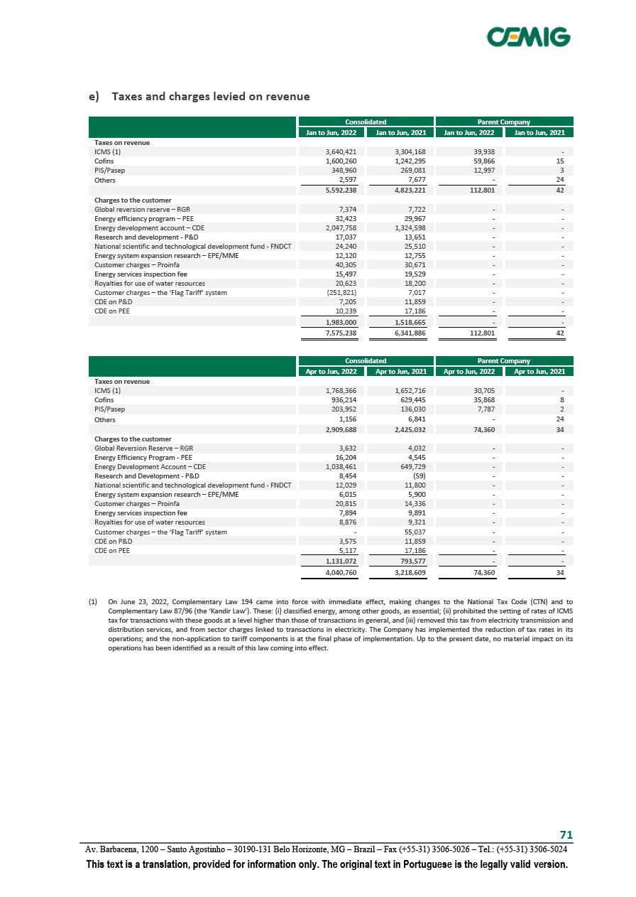 Companhia Energética de Minas Gerais - CEMIG (“Cemig” or “Company”), in response to Official Letter 184/2022/CVM/SEP/GEA-1, of August 31, 2022, makes the following considerations: