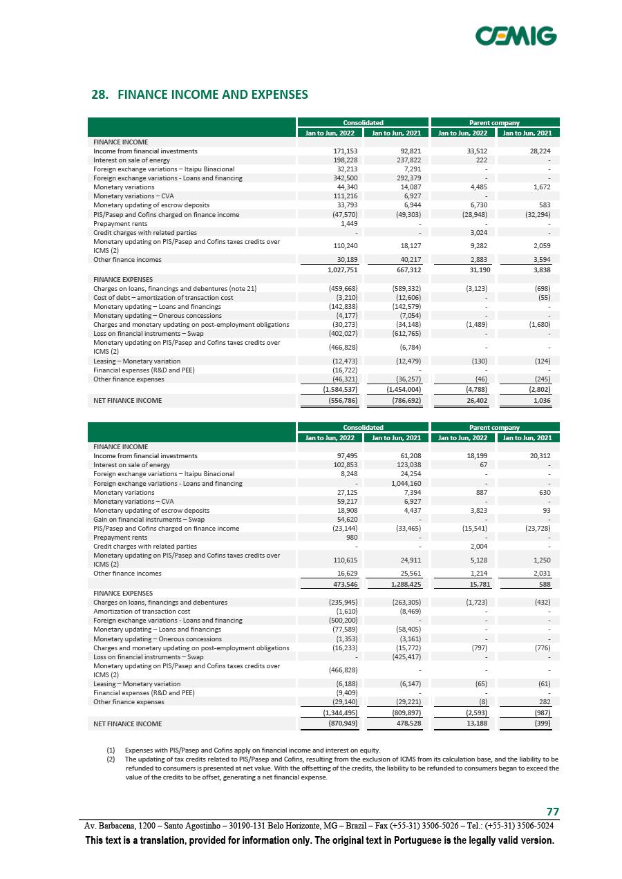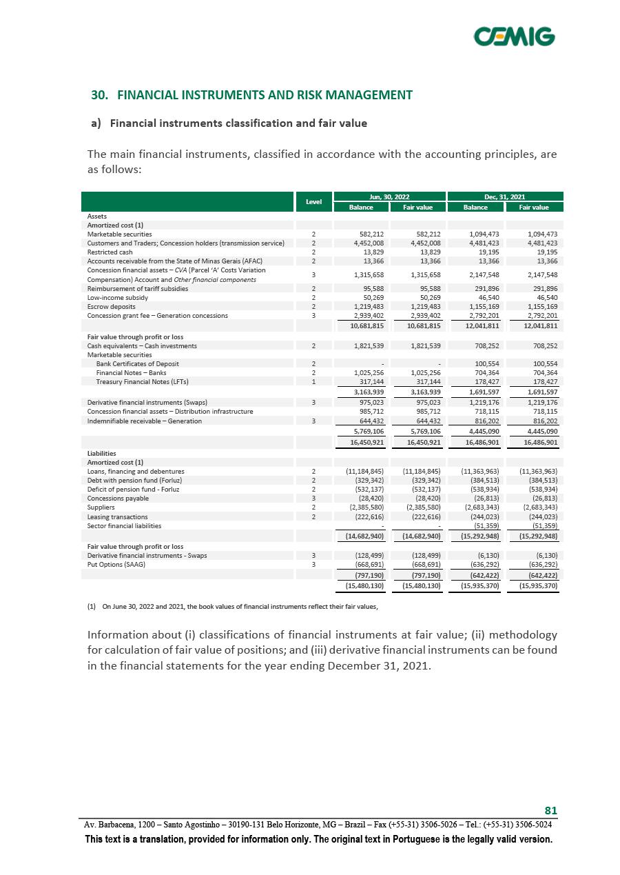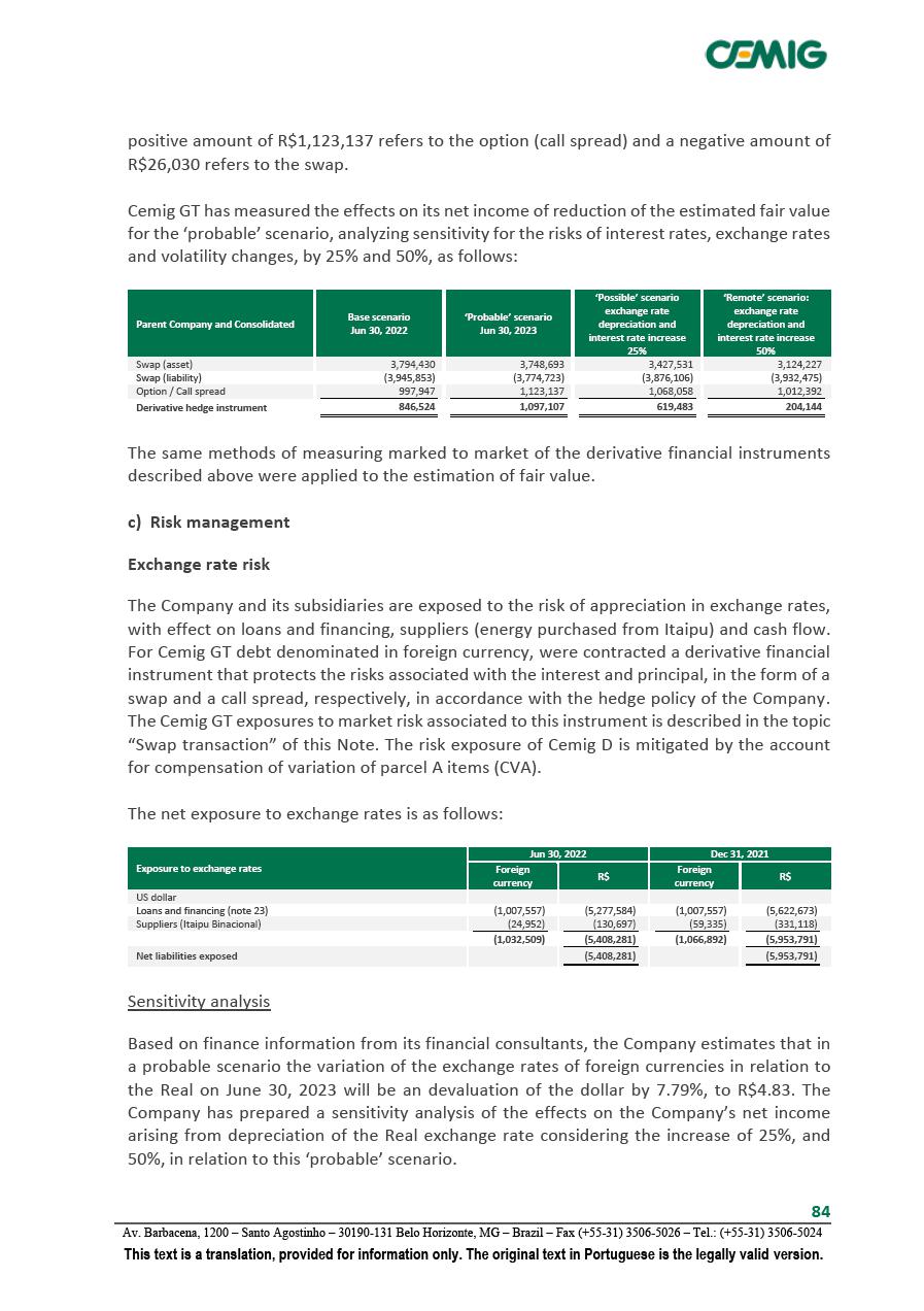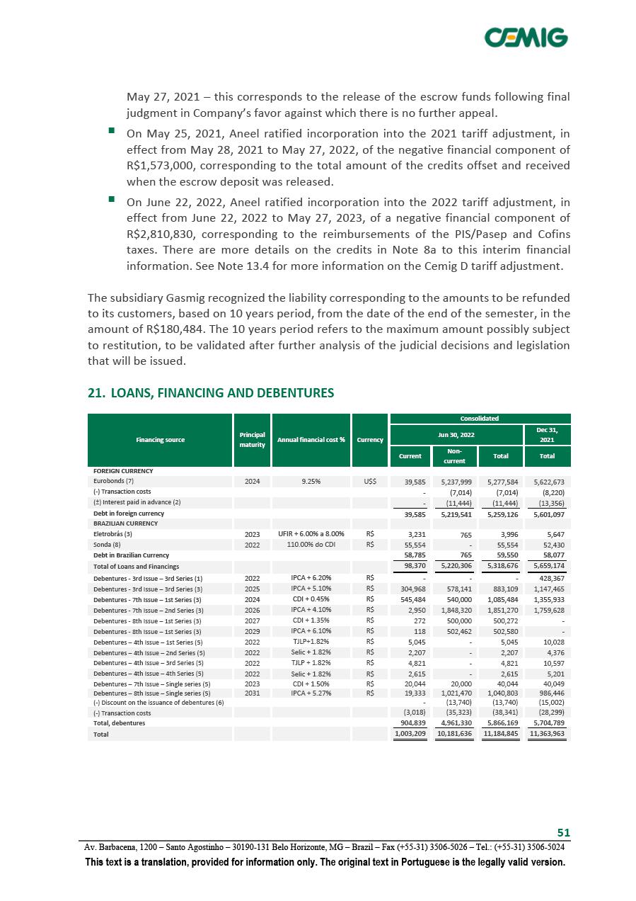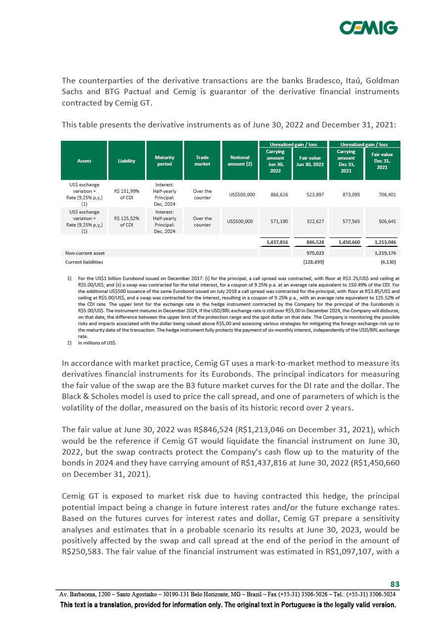 3. It is also worth noting that the 2021 Financial Statements (“DF”) were published and are available to anyone who may be interested on the Company’s website, as well as on the website of this Agency, with the following information: “At the end of 2020, the Company began internal procedures for the investigation of allegations received by the Prosecution Office of the Minas Gerais State (MPMG), through Official Letters, the content of which basically refers to alleged irregularities in public bidding purchasing processes. The investigation is being conducted by a New Investigation Committee, with support from specialized advisors. The independent internal investigation started in 2020 has been concluded and the final report has been delivered to and approved by the Investigation Committee on November 24, 2021, and no matters that could significantly impact the financial statements for December 31, 2021, or the financial statements for previous years have been identified. However, the Company is awaiting the outcome of the ongoing investigations by the MPMG and comments from Brazilian and international authorities, to which the reports were presented, to confirm whether any additional procedure will be necessary. The Company will evaluate any changes in the future scenario and eventual impacts that could affect the financial statements, when applicable. The Company continues to cooperate with Brazilian and foreign authorities in their analysis related to the ongoing investigations.”