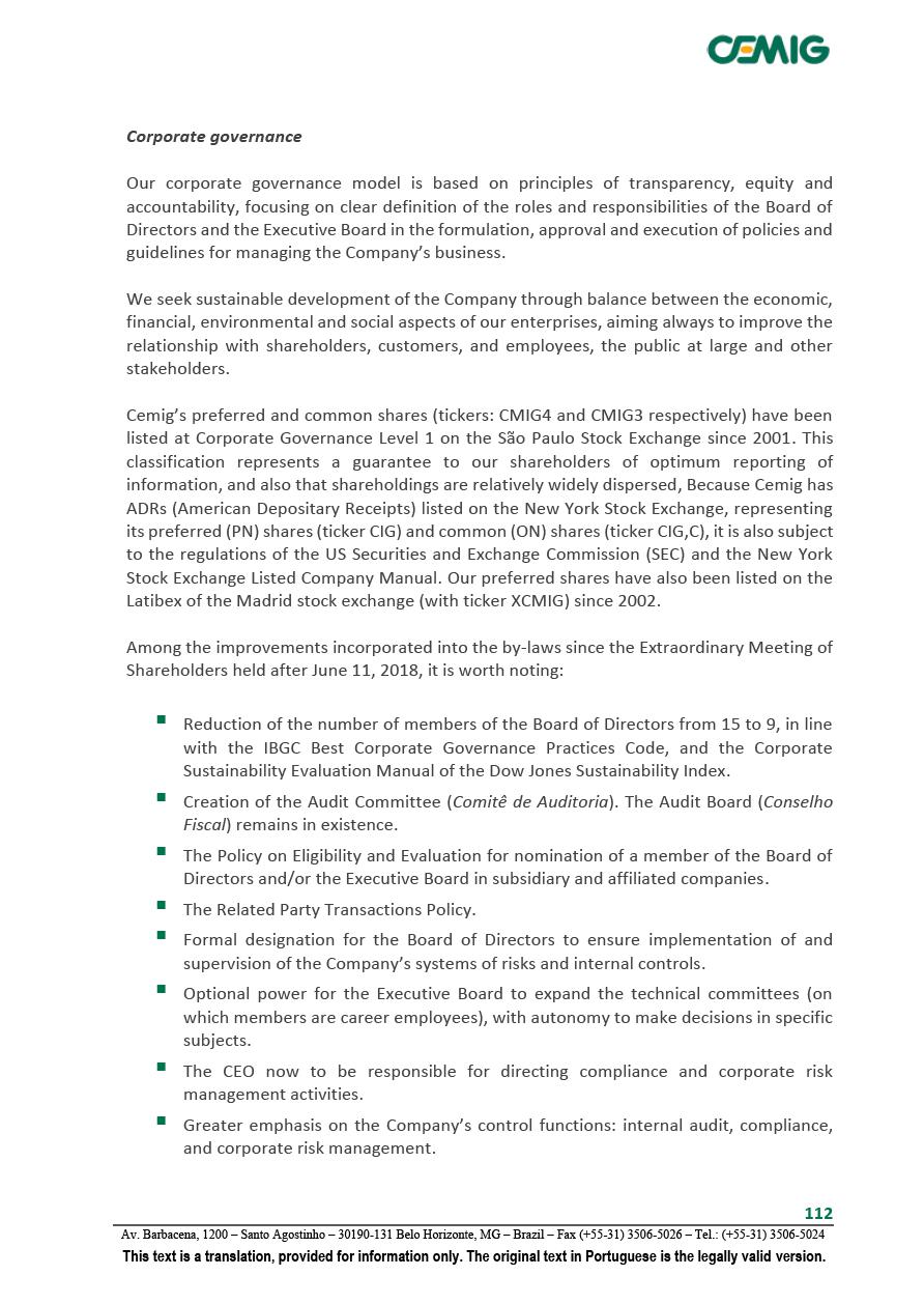 The guidelines and procedures for participating in the Extraordinary Shareholders’ Meeting will be available on the websites of the Company (www.ri.cemig.com.br) and the Brazilian Securities and Exchange Commission (www.cvm.gov.br), through the release of Notice to Shareholders.
