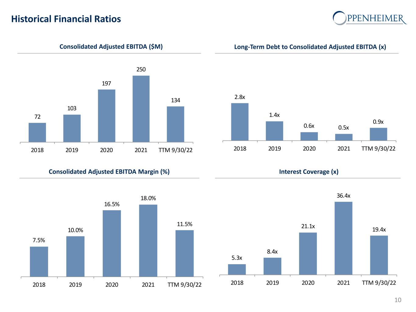 Historical Financial Ratios Consolidated Adjusted EBITDA ($M) Interest Coverage (x)Consolidated Adjusted EBITDA Margin (%) Long-Term Debt to Consolidated Adjusted EBITDA (x) 10 72 103 197 250 134 2018 2019 2020 2021 TTM 9/30/22 2.8x 1.4x 0.6x 0.5x 0.9x 2018 2019 2020 2021 TTM 9/30/22 7.5% 10.0% 16.5% 18.0% 11.5% 2018 2019 2020 2021 TTM 9/30/22 5.3x 8.4x 21.1x 36.4x 19.4x 2018 2019 2020 2021 TTM 9/30/22