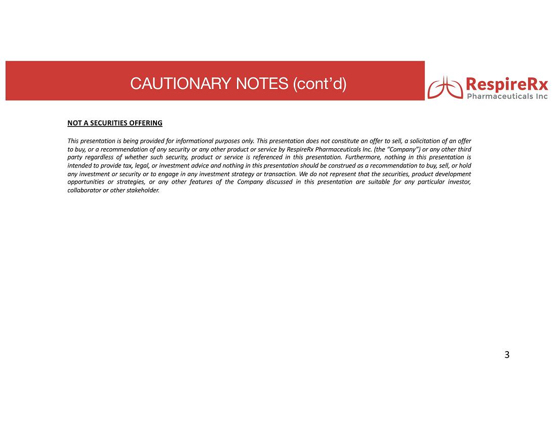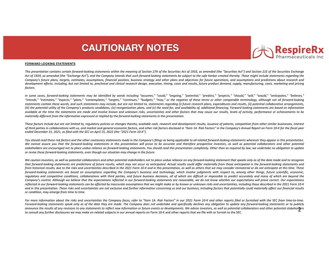 Additional information about RespireRx and the matters discussed herein can be obtained on the Company’s web-site at www.RespireRx.com or in the Company’s filings with the Securities and Exchange Commission at www.sec.gov.