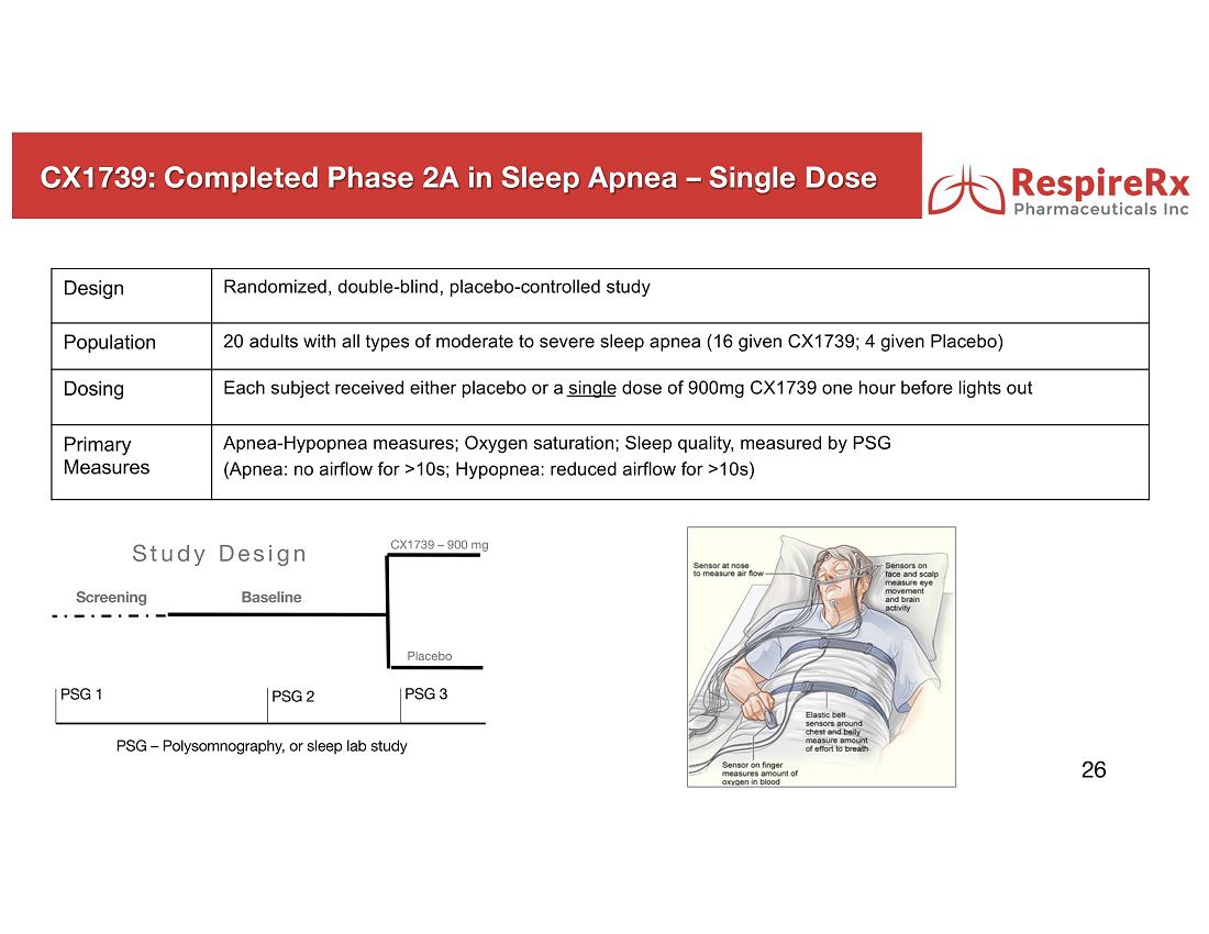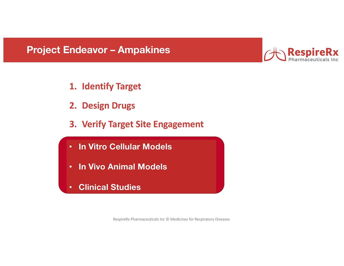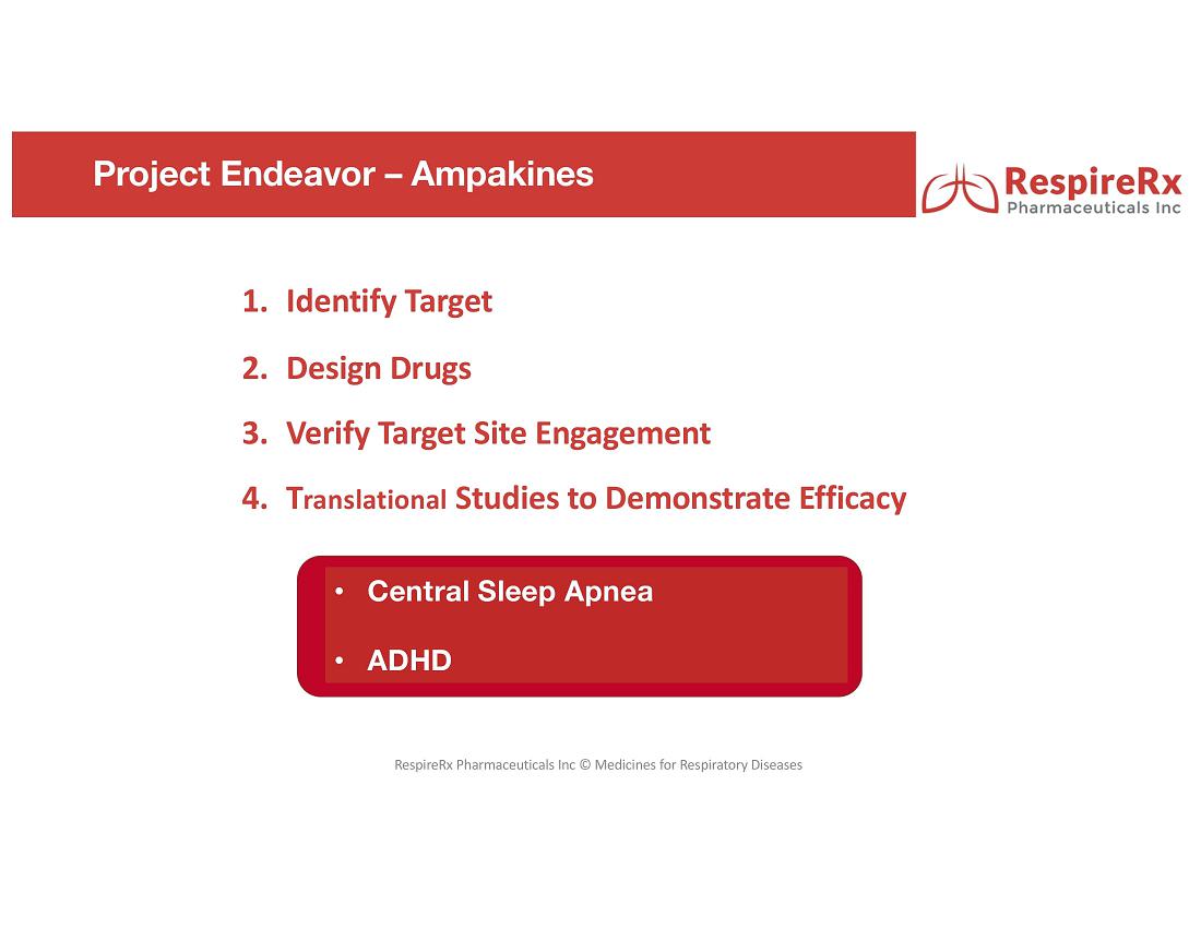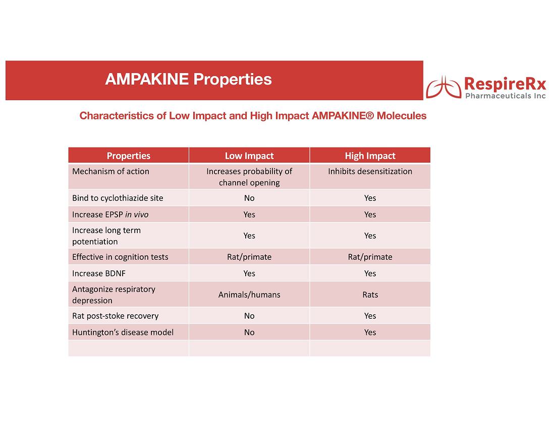 AMPAkines. Through an extensive translational research effort from the cellular level through Phase 2 clinical trials, the Company has developed a family of novel, low impact AMPAkines, including CX717, CX1739 and CX1942 that may have clinical application in the treatment of CNS-driven neurobehavioral and cognitive disorders, spinal cord injury, neurological diseases, and certain orphan indications. Our lead clinical compounds, CX717 and CX1739, have successfully completed multiple Phase 1 safety trials. Both compounds have also completed Phase 2 proof of concept trials demonstrating target engagement, by antagonizing the ability of opioids to induce respiratory depression.