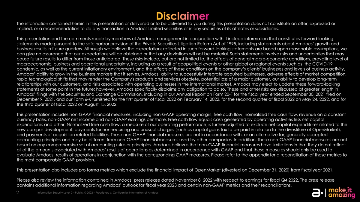 | 99.1 | Amdocs Limited Press Release dated November 8, 2022. | |