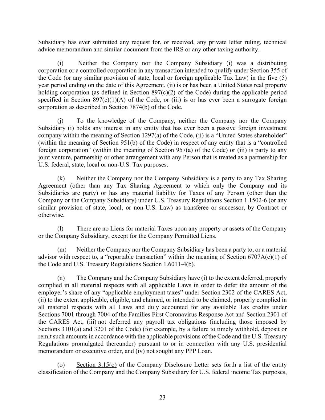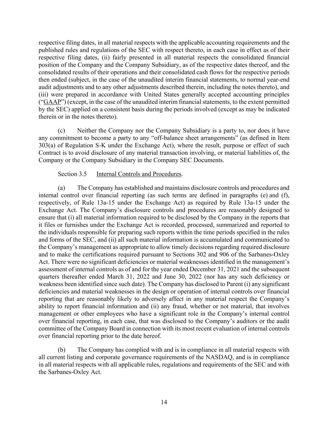 2.2Representations and Warranties of Parent. Parent hereby represents and warrants to the Stockholders as follows: