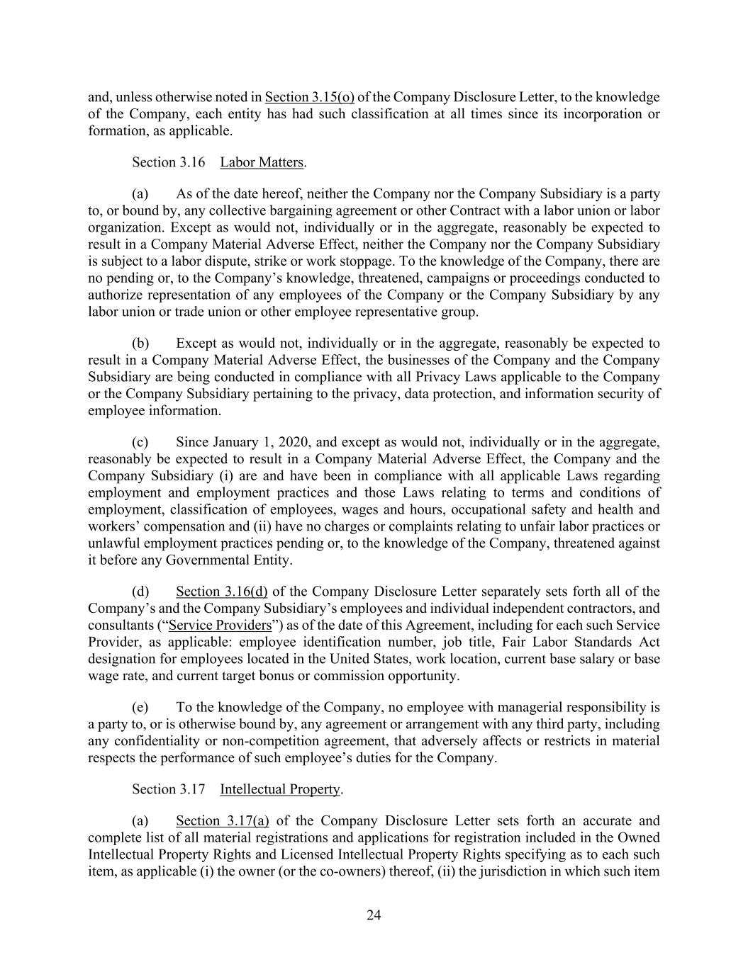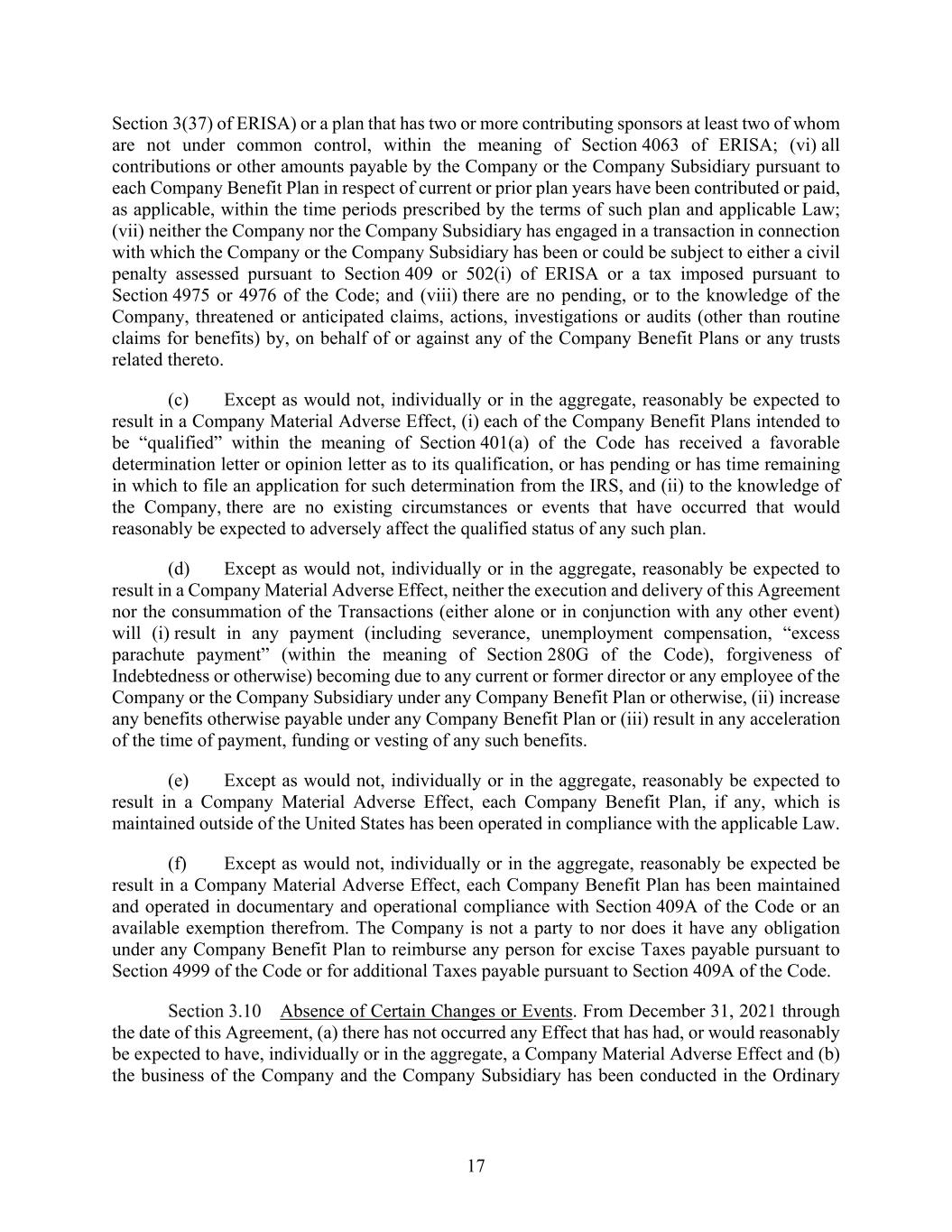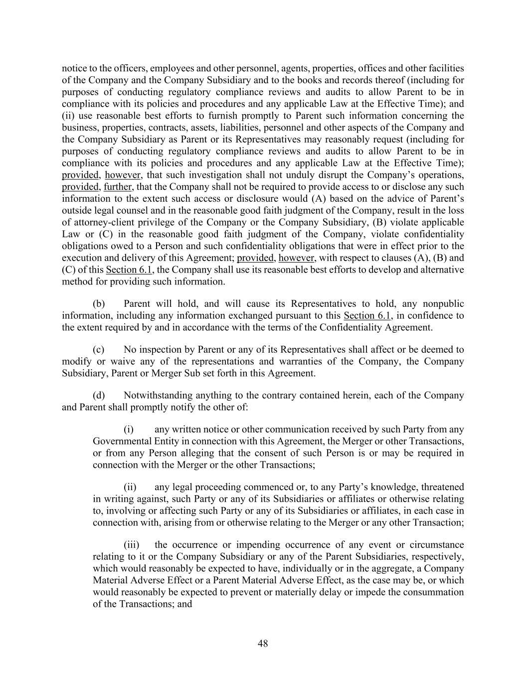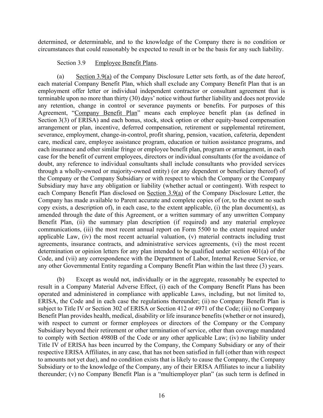 TABLE OF CONTENTS Page ARTICLE I. THE MERGER ......................................................................................................... 1 The Merger ........................................................................................... 1 Closing ................................................................................................. 2 Effective Time ..................................................................................... 2 Governing Documents ......................................................................... 2 Officers and Directors of the Surviving Corporation .......................... 2 ARTICLE II. TREATMENT OF SECURITIES ........................................................................... 3 Effect on Capital Stock ........................................................................ 3 Payment for Securities; Surrender of Certificates ............................... 4 Appraisal Rights. .................................................................................. 6 Treatment of Company Options and Company Equity Awards. ......... 6 Withholding ......................................................................................... 8 Treatment of Company Warrants ......................................................... 9 Notice to Convertible Noteholders ...................................................... 9 ARTICLE III. REPRESENTATIONS AND WARRANTIES OF THE COMPANY .................. 9 Qualification, Organization, Subsidiaries, etc ..................................... 9 Capitalization. .................................................................................... 10 Corporate Authority Relative to this Agreement; No Violation ........ 12 Reports and Financial Statements ...................................................... 13 Internal Controls and Procedures ....................................................... 14 No Undisclosed Liabilities ................................................................. 15 Compliance with Laws; Permits ........................................................ 15 Environmental Laws and Regulations ............................................... 15 Employee Benefit Plans ..................................................................... 16 Absence of Certain Changes or Events .............................................. 17 Investigations; Litigation ................................................................... 18 Information Supplied ......................................................................... 18 Regulatory Matters............................................................................. 18 Privacy and Data Security .................................................................. 20 Tax Matters ........................................................................................ 21 Labor Matters ..................................................................................... 24 Intellectual Property ........................................................................... 24 Property .............................................................................................. 27 Opinion of Financial Advisor ............................................................ 27 Required Vote; State Takeover Statutes ............................................ 28 Material Contracts .............................................................................. 28 Insurance ............................................................................................ 31 Finders and Brokers ........................................................................... 31 Anti-Corruption; Sanctions ................................................................ 32 Affiliate Transactions ......................................................................... 32