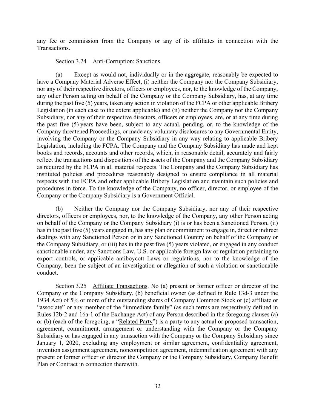 (h)Finder’s Fees. No agent, broker, investment banker, finder or other intermediary is or will be entitled to any fee or commission or reimbursement of expenses from Parent, or the Company or any of their respective affiliates in respect of this Agreement based upon any arrangement or agreement made by or on behalf of such Stockholder.