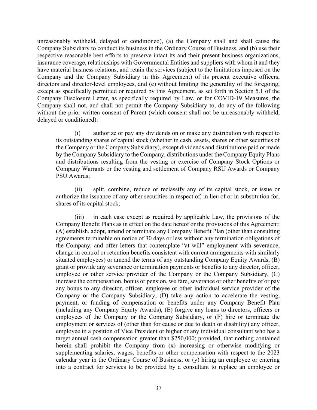 Subject to certain limited exceptions, the Merger Agreement provides that the Company, its subsidiaries, and its and their respective representatives are prohibited from, among other things, soliciting, initiating or knowingly encouraging or facilitating the making or submission of any alternative acquisition proposals from third parties or providing information to or participating in any discussions or negotiations regarding an alternative acquisition proposal with any person that has made an alternate acquisition proposal, in each case subject to certain fiduciary duties of the Board to the Company’s stockholders under applicable laws.