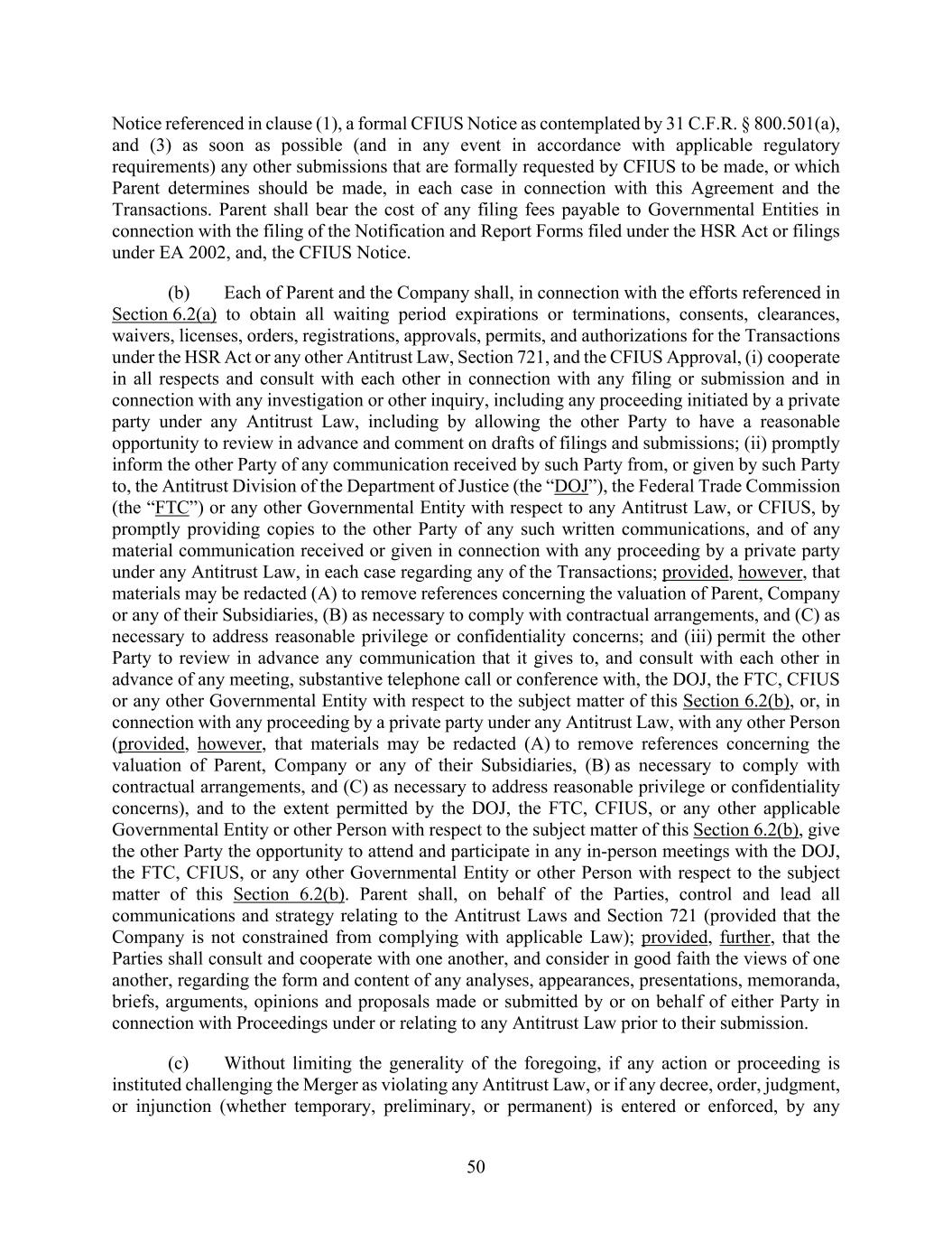 (ii)Except for (A) compliance with any applicable requirements of the Securities Act, the Exchange Act or any other United States state or federal securities Laws, (B) compliance with any rules or regulations of the LSE, and (C) actions or filings the failure of