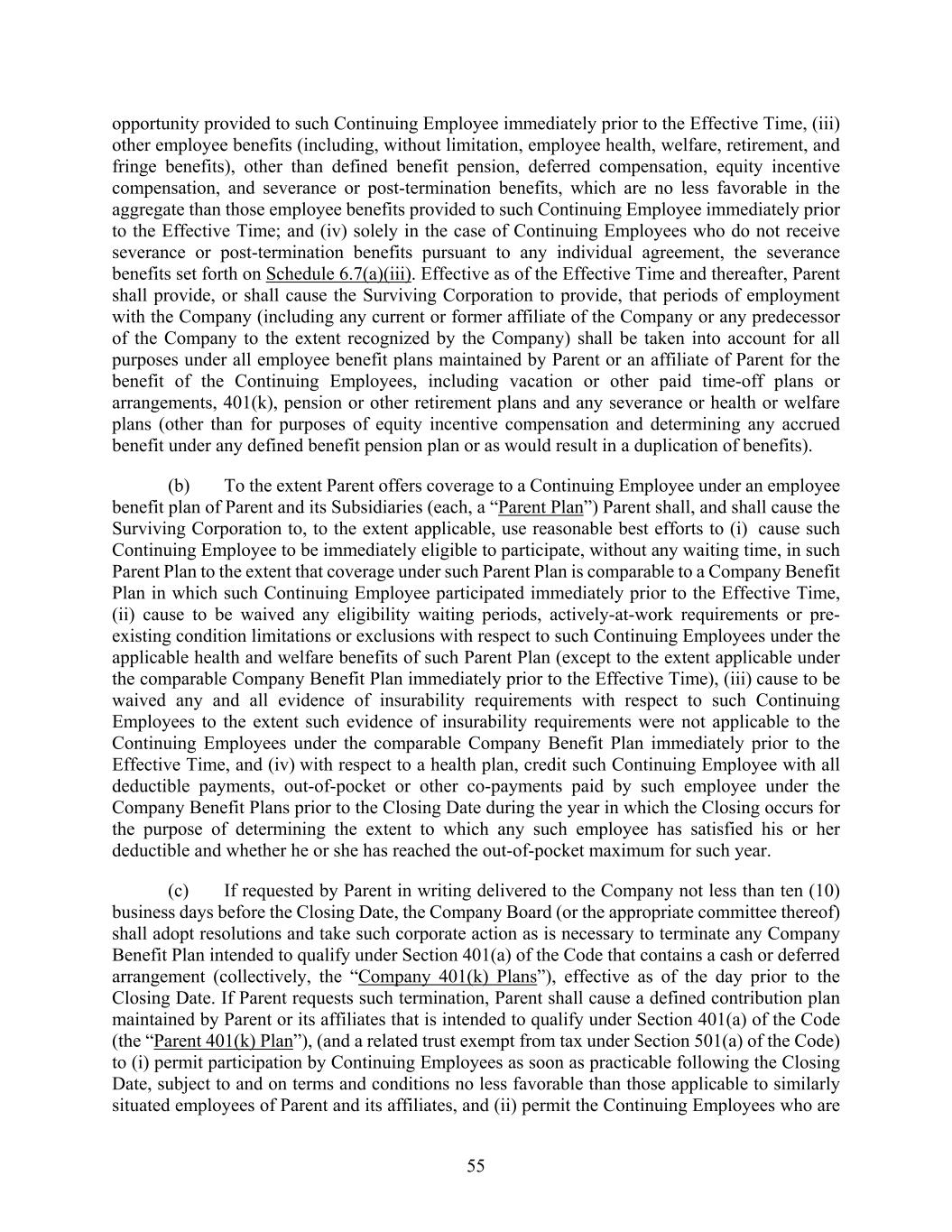 Effective immediately prior to the Effective Time, by virtue of the Merger, each option to purchase Company Common Stock granted under any Company Equity Plan (as defined in the Merger Agreement) or otherwise (each, a “Company Stock Option”), that is outstanding and unexercised immediately prior to the Effective Time, whether vested or unvested, shall be cancelled and terminated and treated as follows: