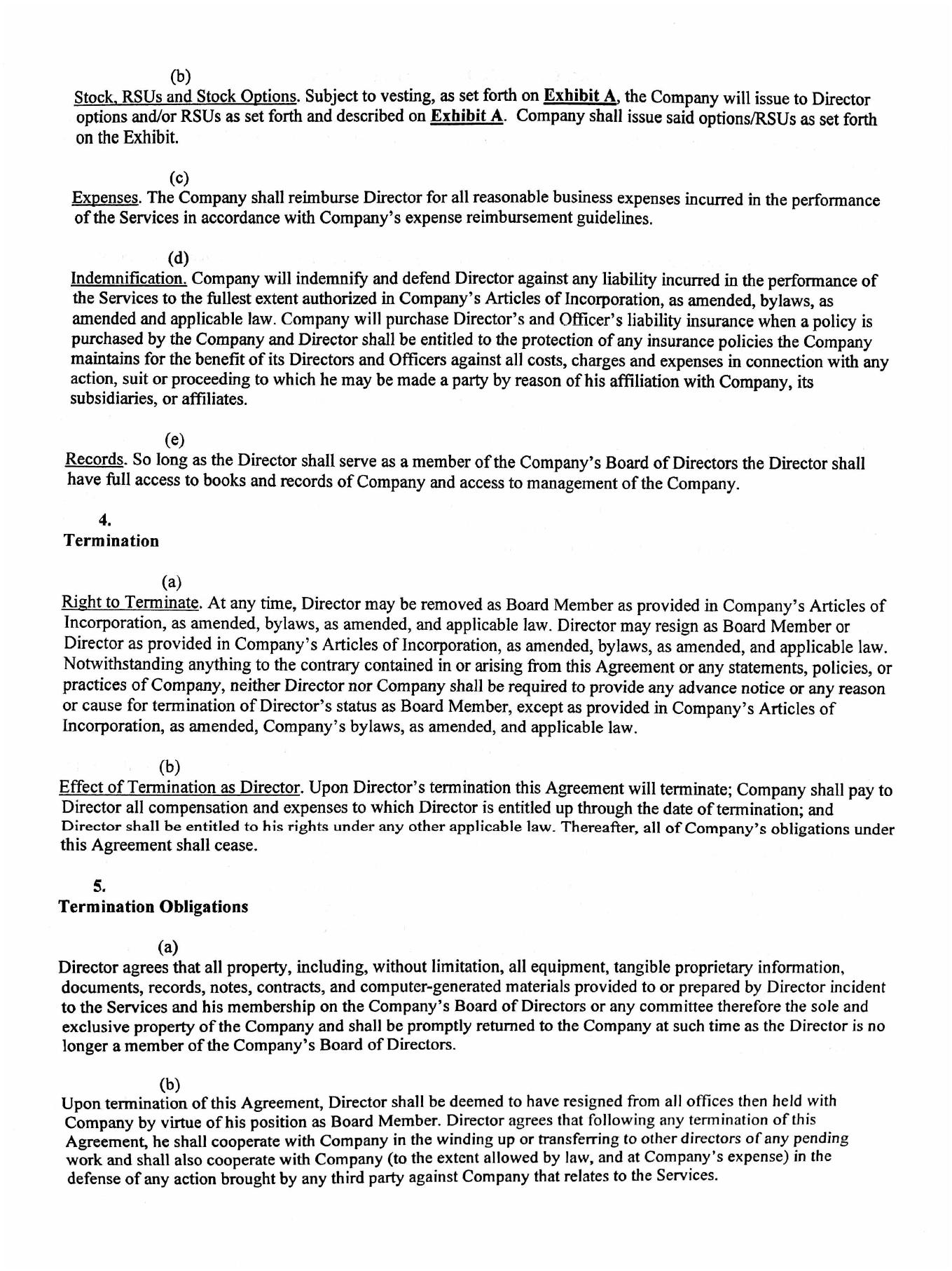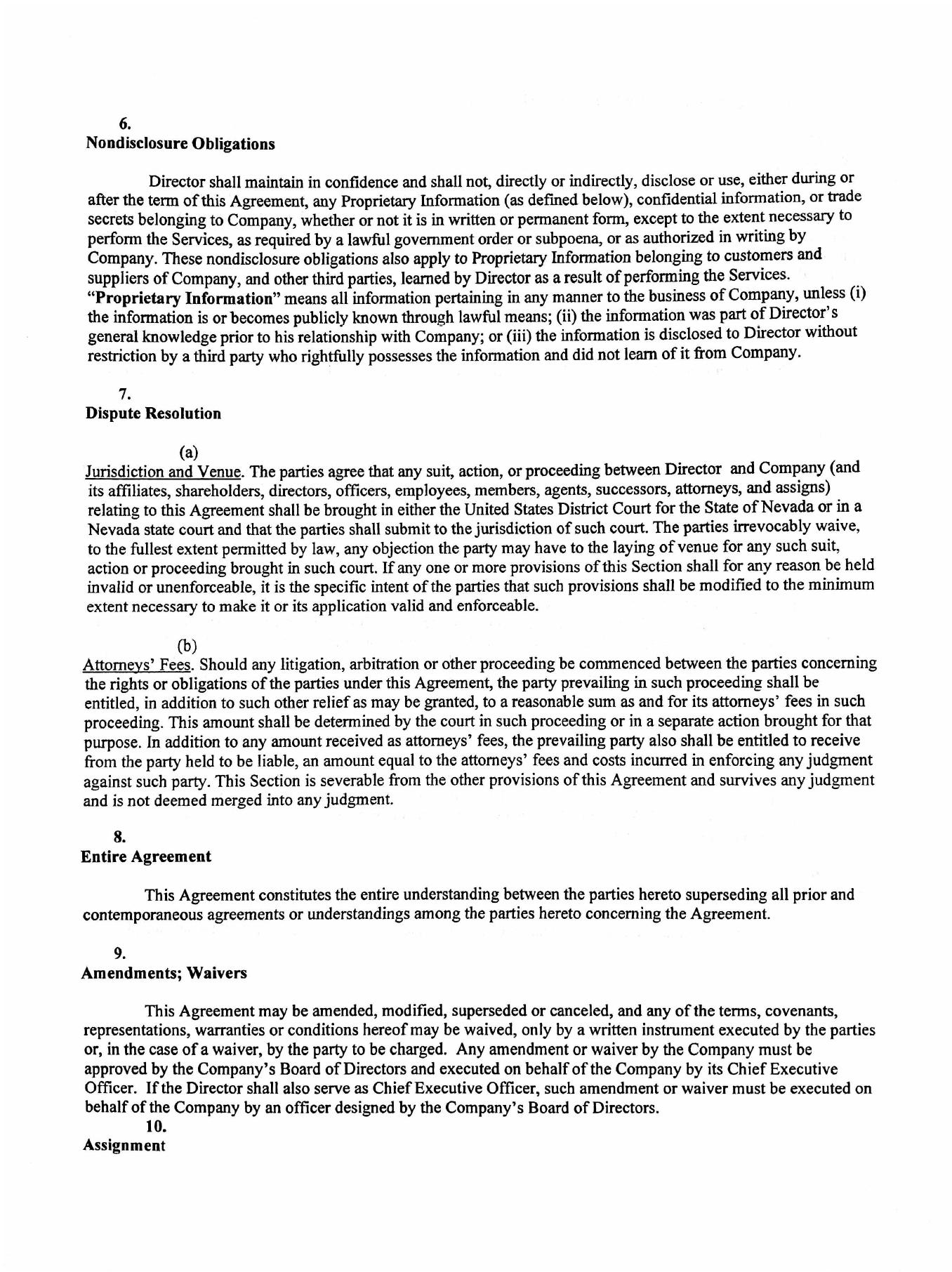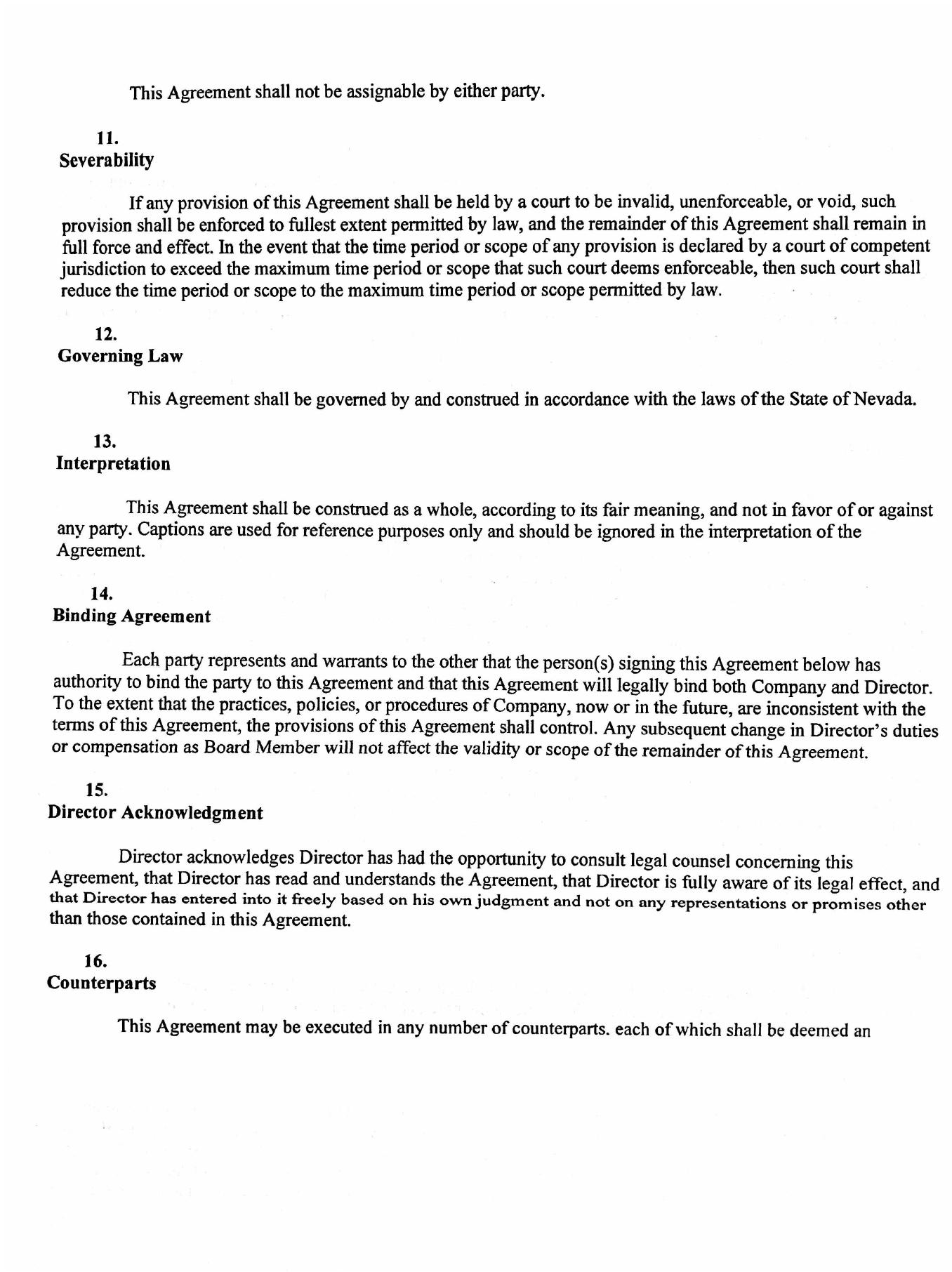 | 10.1 | Director’s Agreement dated November 11, 2022 |