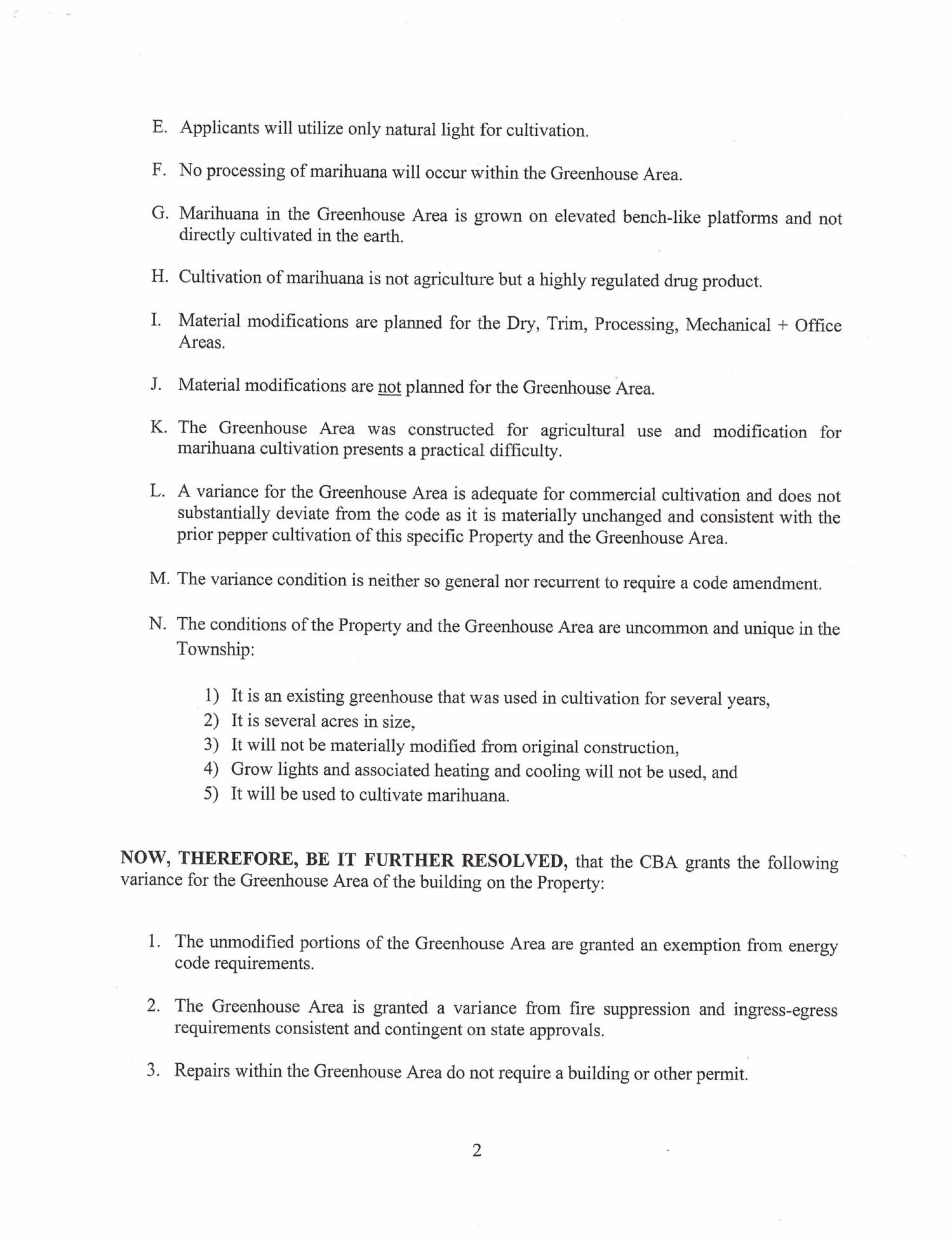 | - | The existing greenhouse portion of the facility was granted the following variances: |