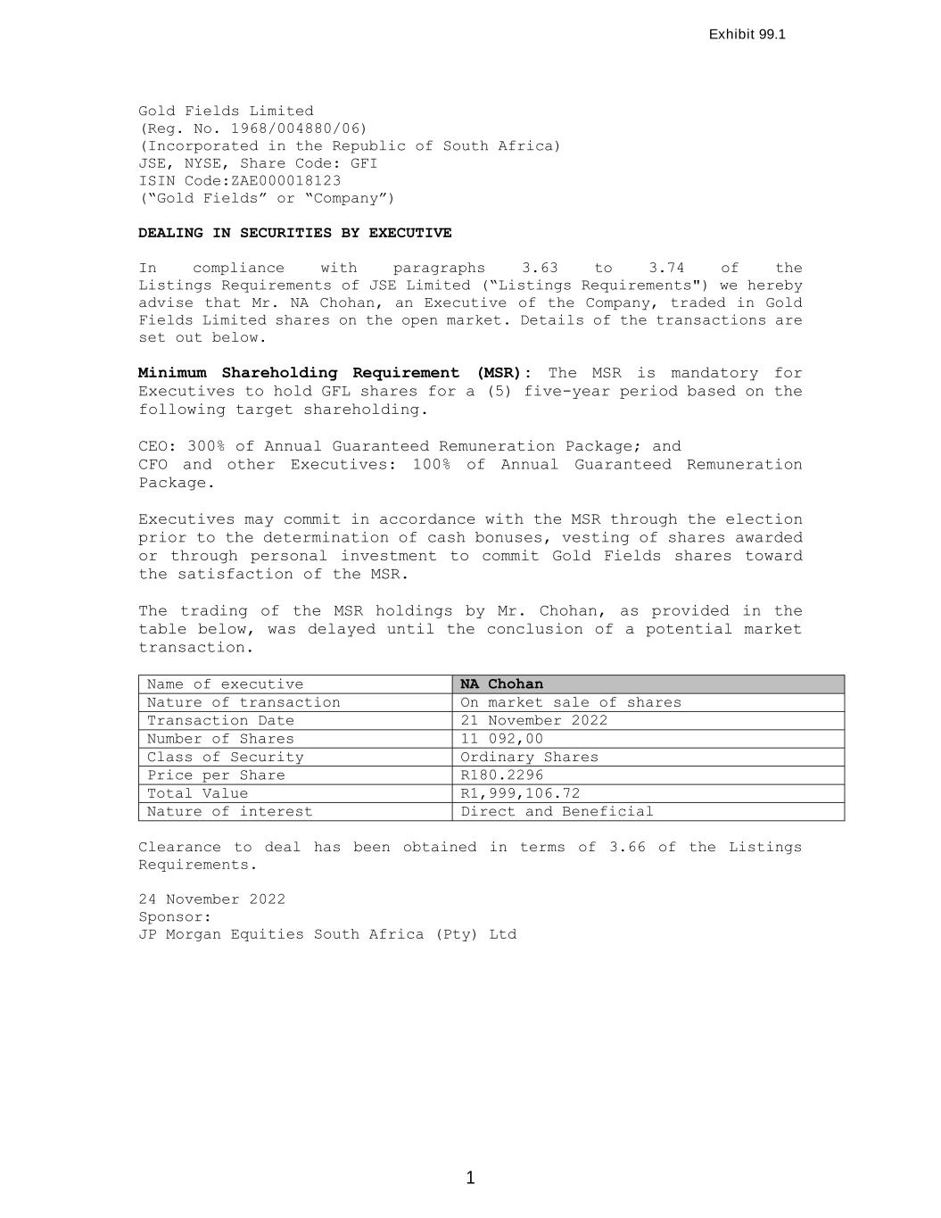 | Gold Fields Limited |