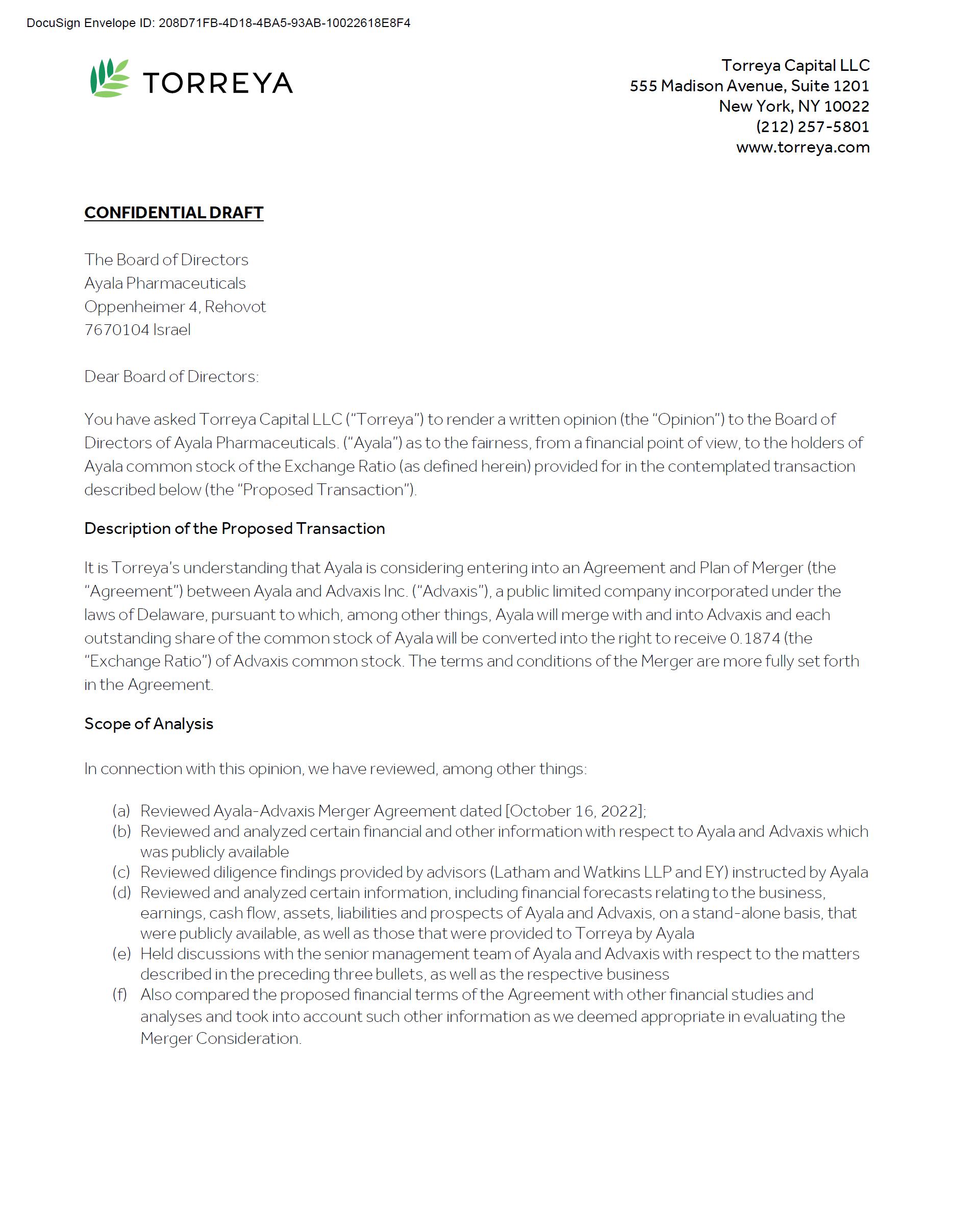 More information about Advaxis, Ayala, the Merger Agreement and the transactions contemplated thereby (collectively the “Transactions”), and the foregoing proposals is contained in the accompanying proxy statement/prospectus. Ayala urges you to read the accompanying proxy statement/prospectus carefully and in its entirety. IN PARTICULAR, YOU SHOULD CAREFULLY CONSIDER THE MATTERS DISCUSSED UNDER “RISK FACTORS” BEGINNING ON PAGE 25 OF THE ACCOMPANYING PROXY STATEMENT/PROSPECTUS.