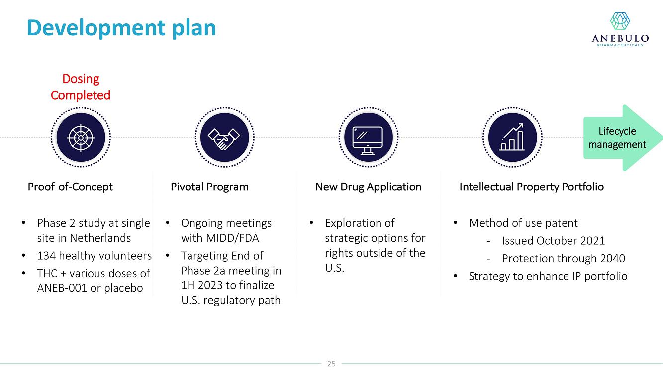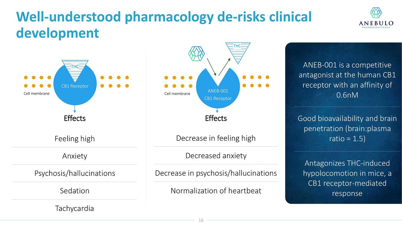 | ● | Preliminary data showed ANEB-001 reduced effects of a 30 mg dose of THC | |