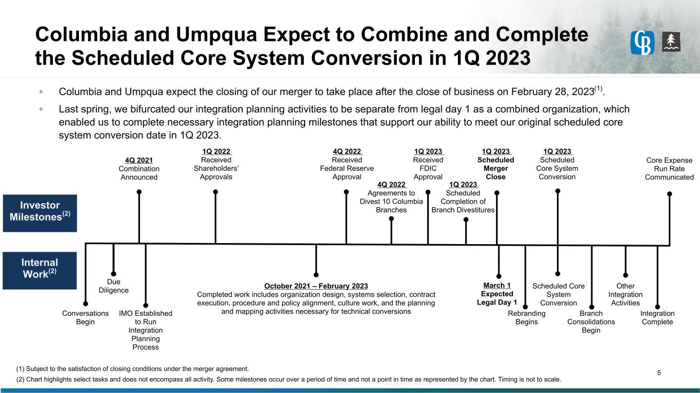 | Notable items | •Set an expected merger closing date of February 28, 2023 after the close of business, subject to the satisfaction of closing conditions. | ||||