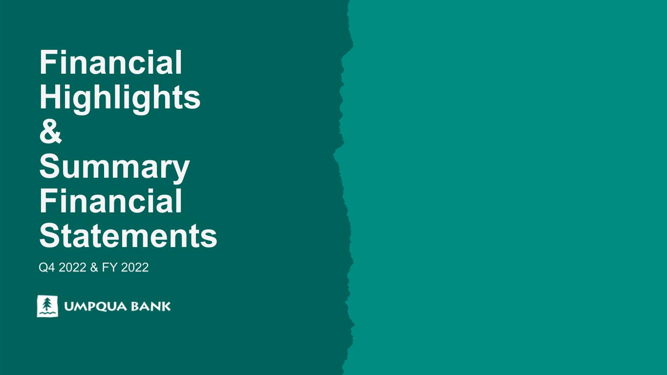 UMPQUA REPORTS FOURTH QUARTER AND FULL-YEAR 2022 RESULTS | ||||||||||||||||||||