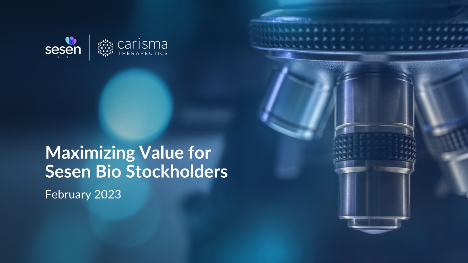 CAMBRIDGE, Mass. – (BUSINESS WIRE) – February 2, 2023 – Sesen Bio, Inc. (NASDAQ: SESN) today filed an investor presentation highlighting its value maximizing merger with Carisma Therapeutics Inc. (“Carisma”). The presentation can be found at www.SesenBioandCarisma.com.