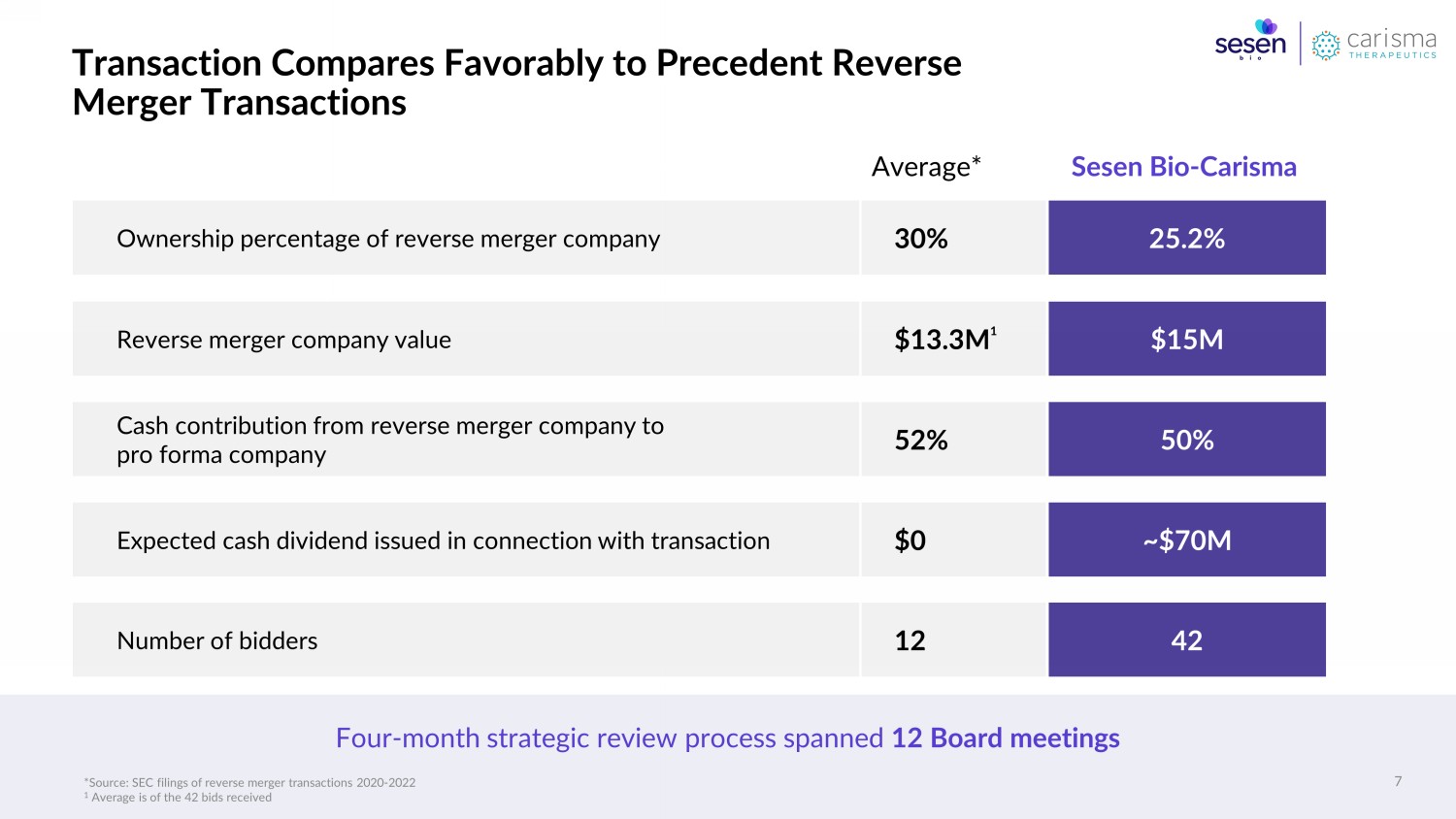 | · | The merger with Carisma delivers substantial and immediate value for Sesen Bio stockholders, which is meaningfully better than the alternative of dissolution and liquidation |