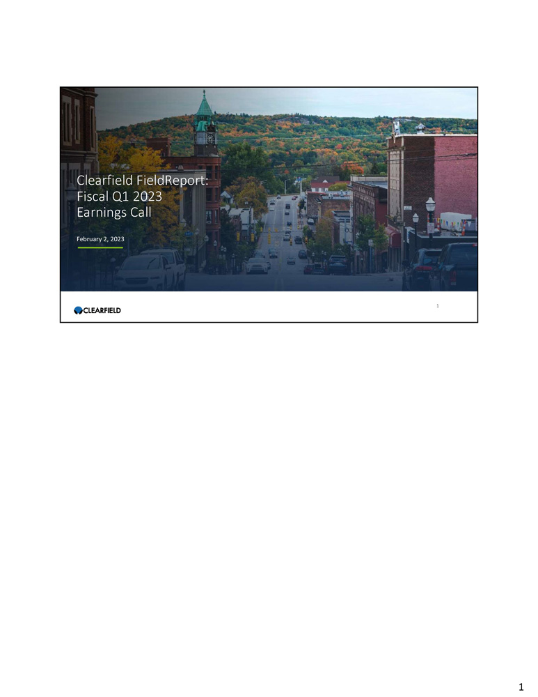 Clearfield FieldReport: Fiscal Q1 2023 Earnings Call February 2, 2023 1 1
