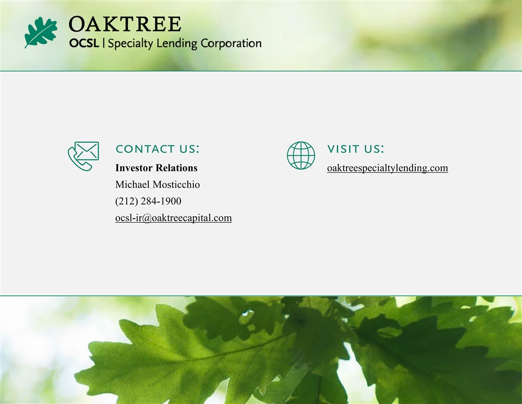 contact us: visit us: Investor Relations oaktreespecialtylending.com Michael Mosticchio (212) 284-1900 ocsl-ir@oaktreecapital.com