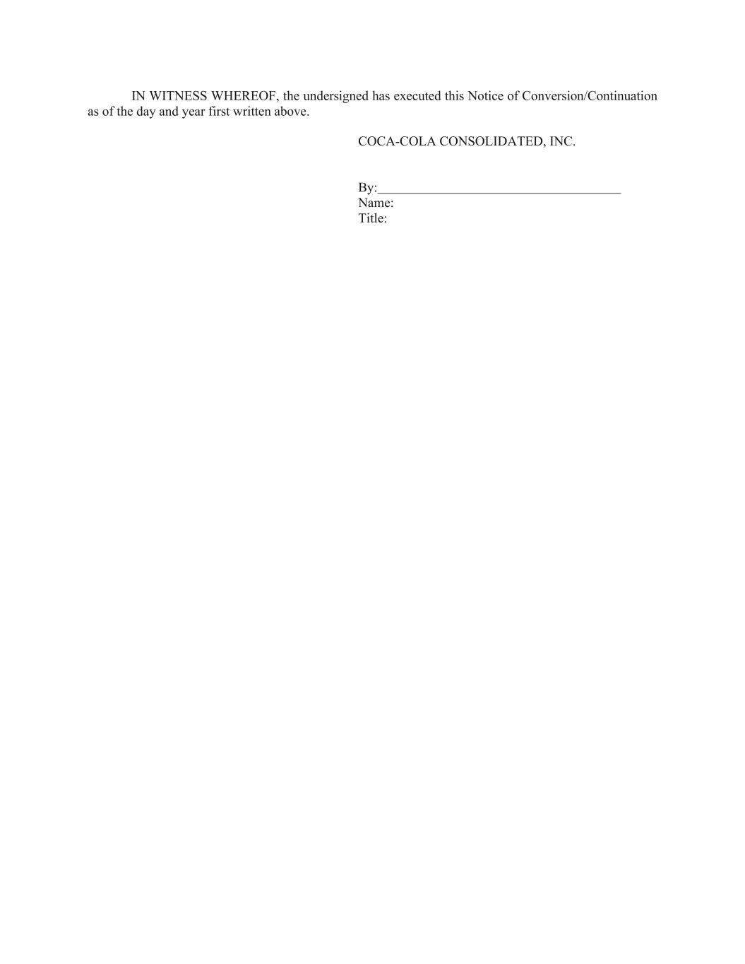 IN WITNESS WHEREOF, the undersigned has executed this Notice of Conversion/Continuation as of the day and year first written above. COCA-COLA CONSOLIDATED, INC. By: Name: Title:
