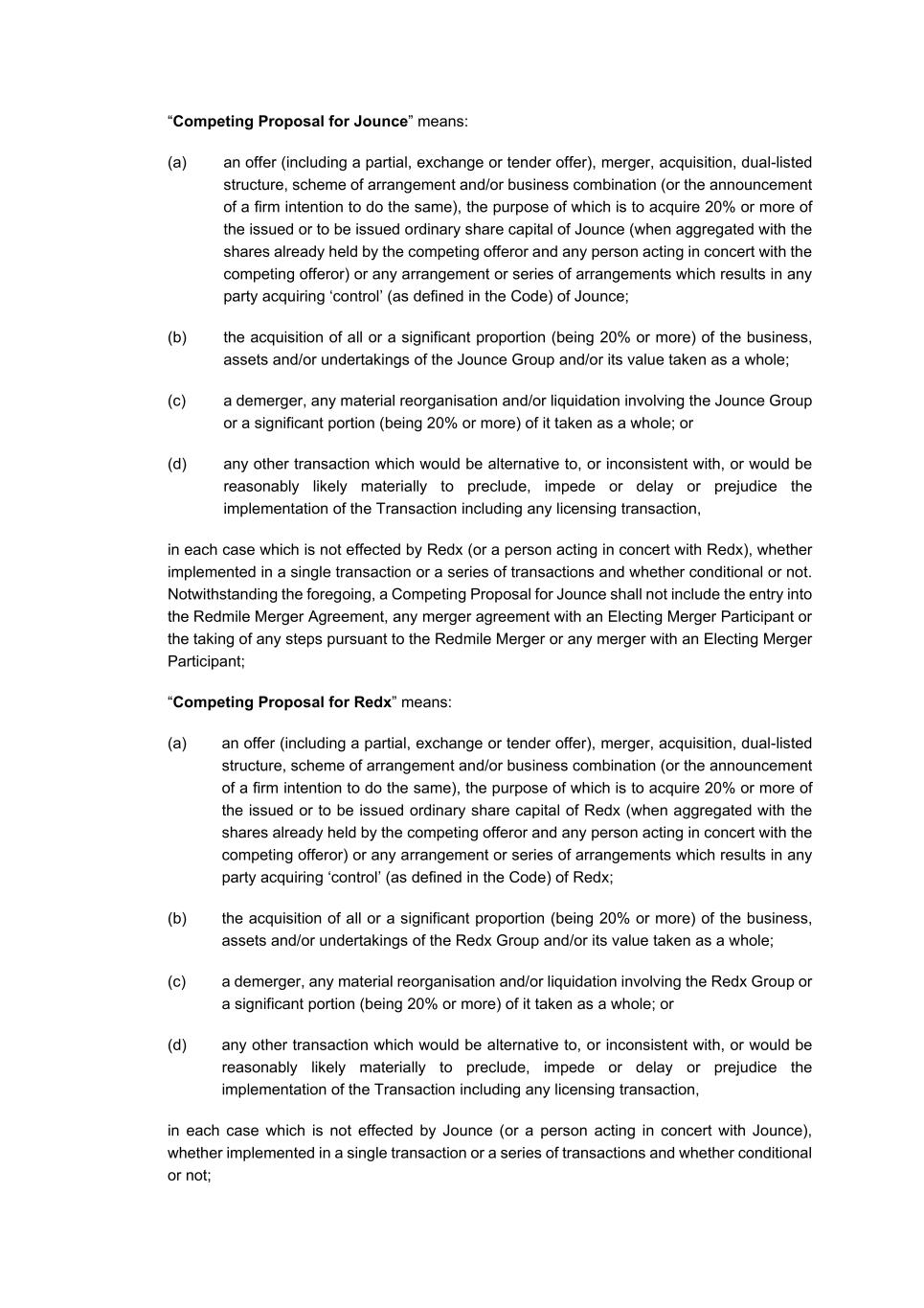 Redx Shareholders who participate in the Merger Steps in accordance with these requirements are referred to in the Rule 2.7 Announcement as “Electing Merger Participants”, and any such merger being an “Elected Merger”, together with the Merger being the “Mergers”.