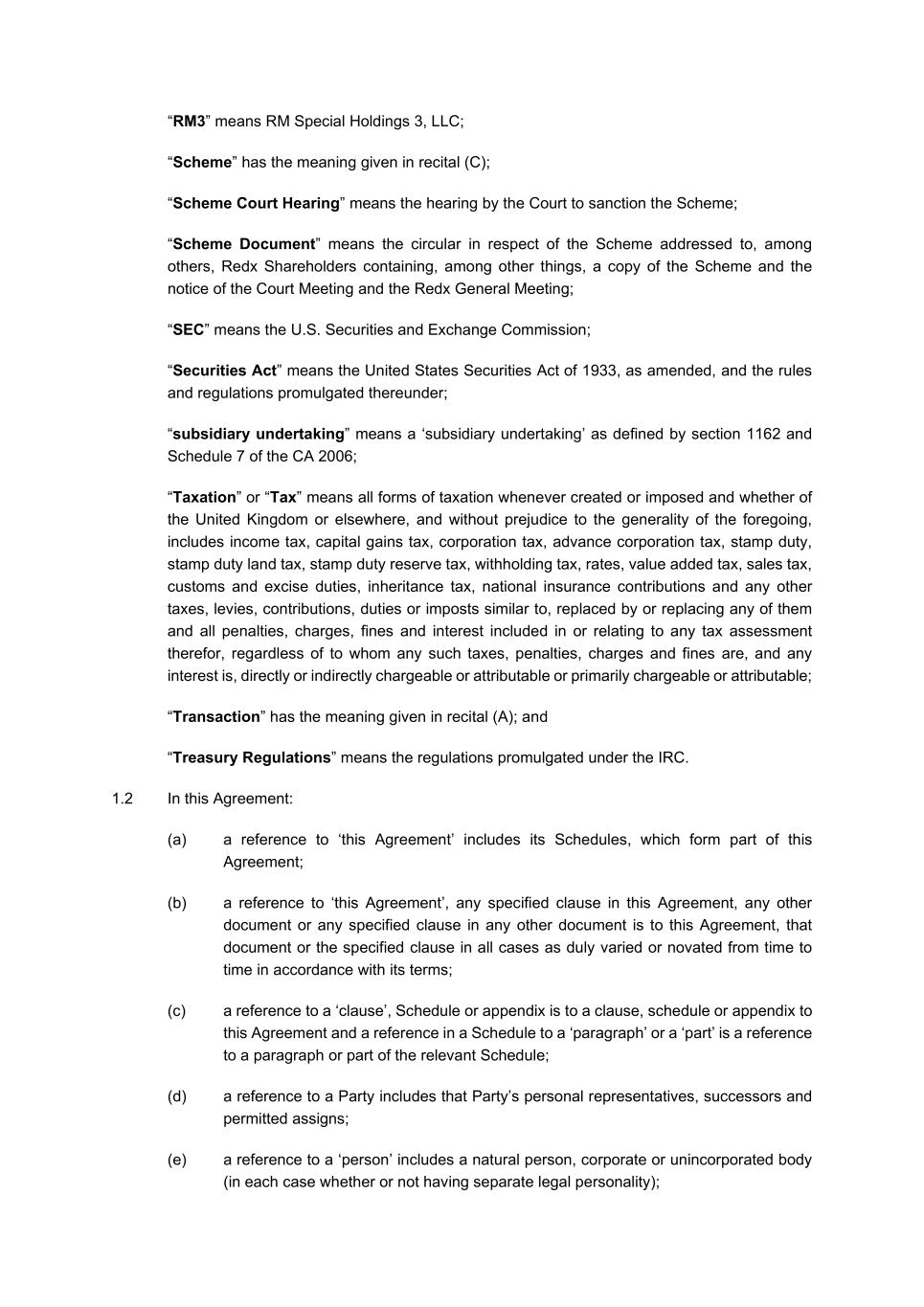 The number of shares of Common Stock to be issued to the members of RM3 pursuant to the Merger is the number of Common Stock which would have been issued to RM3 if the Redx Shares held by RM3 (following conversion of the Convertible Loan Notes held by RM3) had been subject to the Scheme.