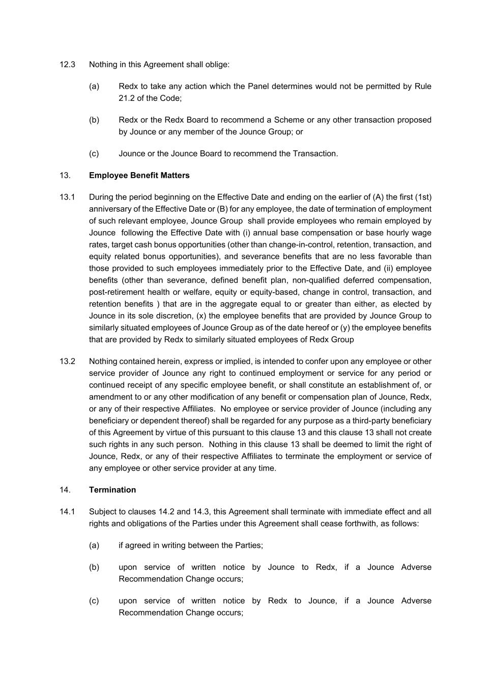 The Cooperation Agreement terminates automatically if either the Redx board or the Company’s Board of Directors (the “Board of Directors”) change its recommendation that its shareholders approve the proposed transaction. The Company also has the right to terminate the Cooperation Agreement if the General Meeting or Court Meeting do not occur within certain specified time periods or if any condition that has not been waived or that is incapable of satisfaction by the Long Stop Date. The Cooperation Agreement will also terminate if the Business Combination is not completed before Long-Stop Date.