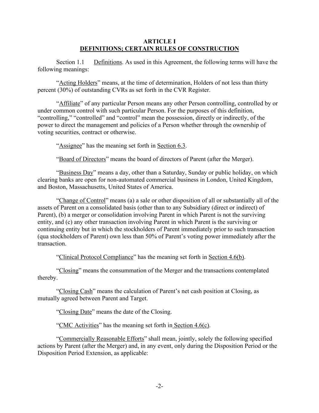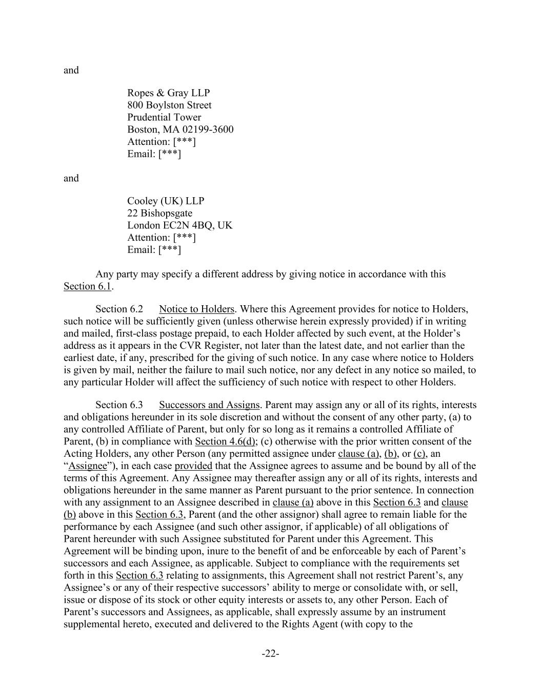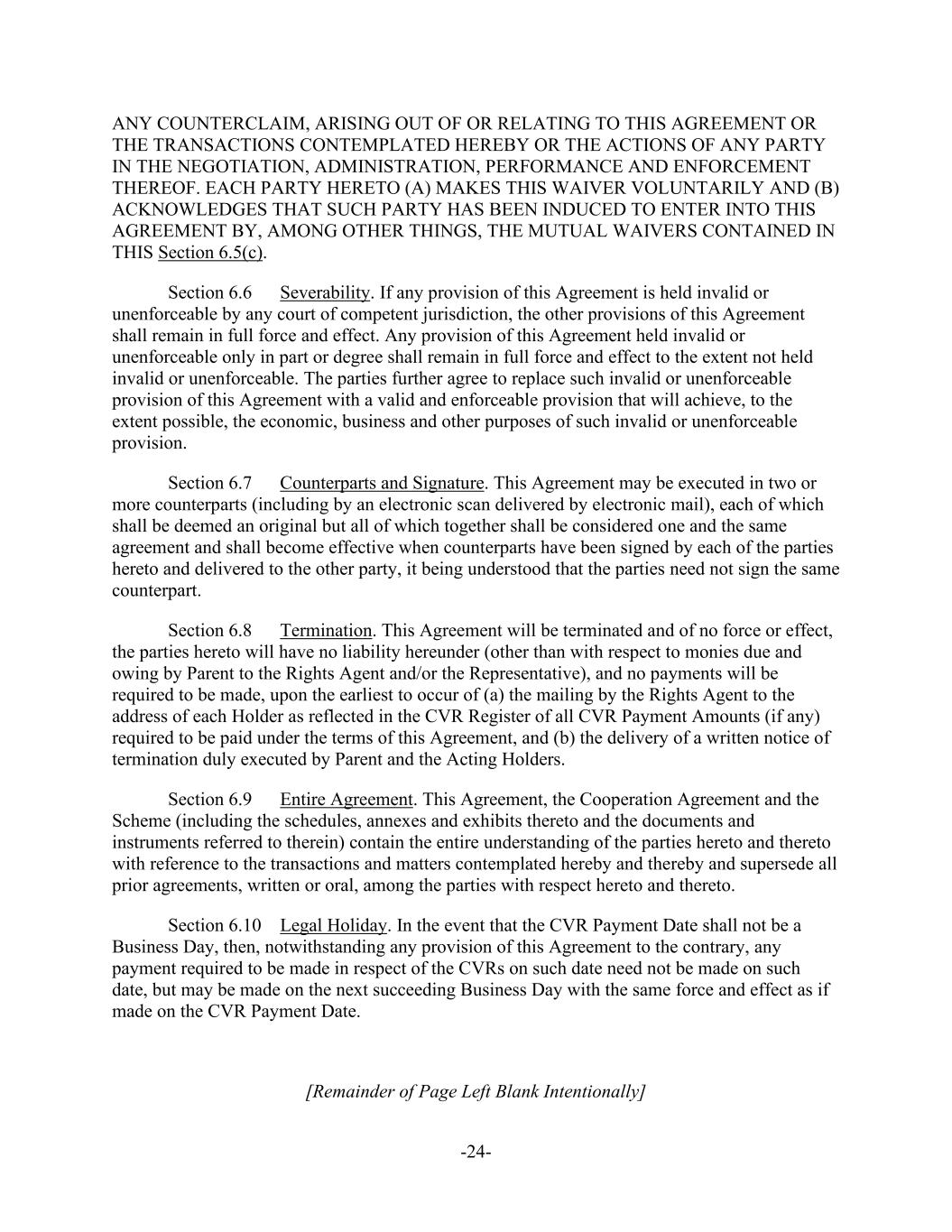 The form of Contingent Value Rights Agreement is included herein as Appendix I to Exhibit 2.2 attached hereto and is incorporated herein by reference. The foregoing description of the Contingent Value Rights Agreement is qualified in its entirety by reference to the full text thereof.