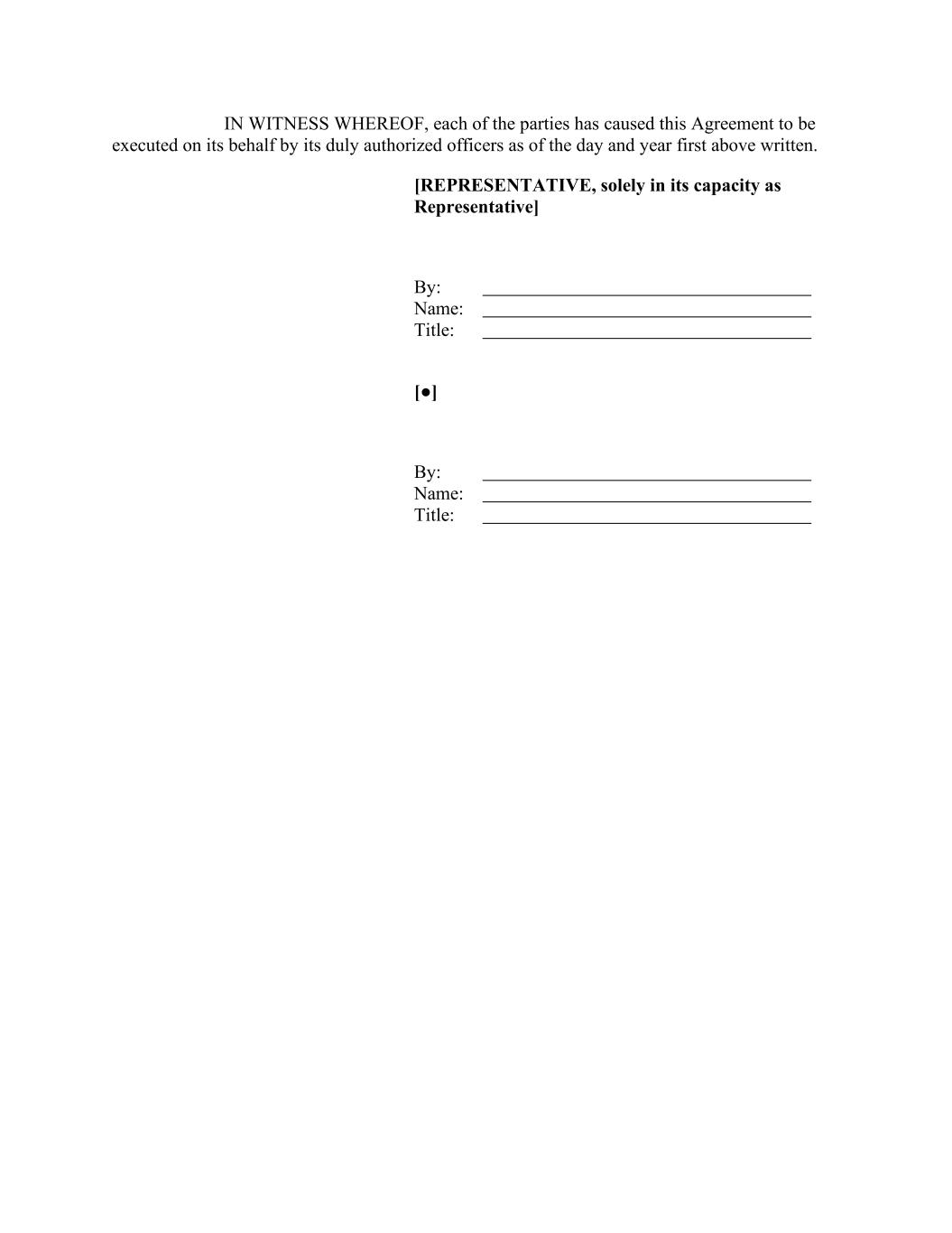 [Remainder of Page Intentionally Left Blank. Signature Pages Follow.]
